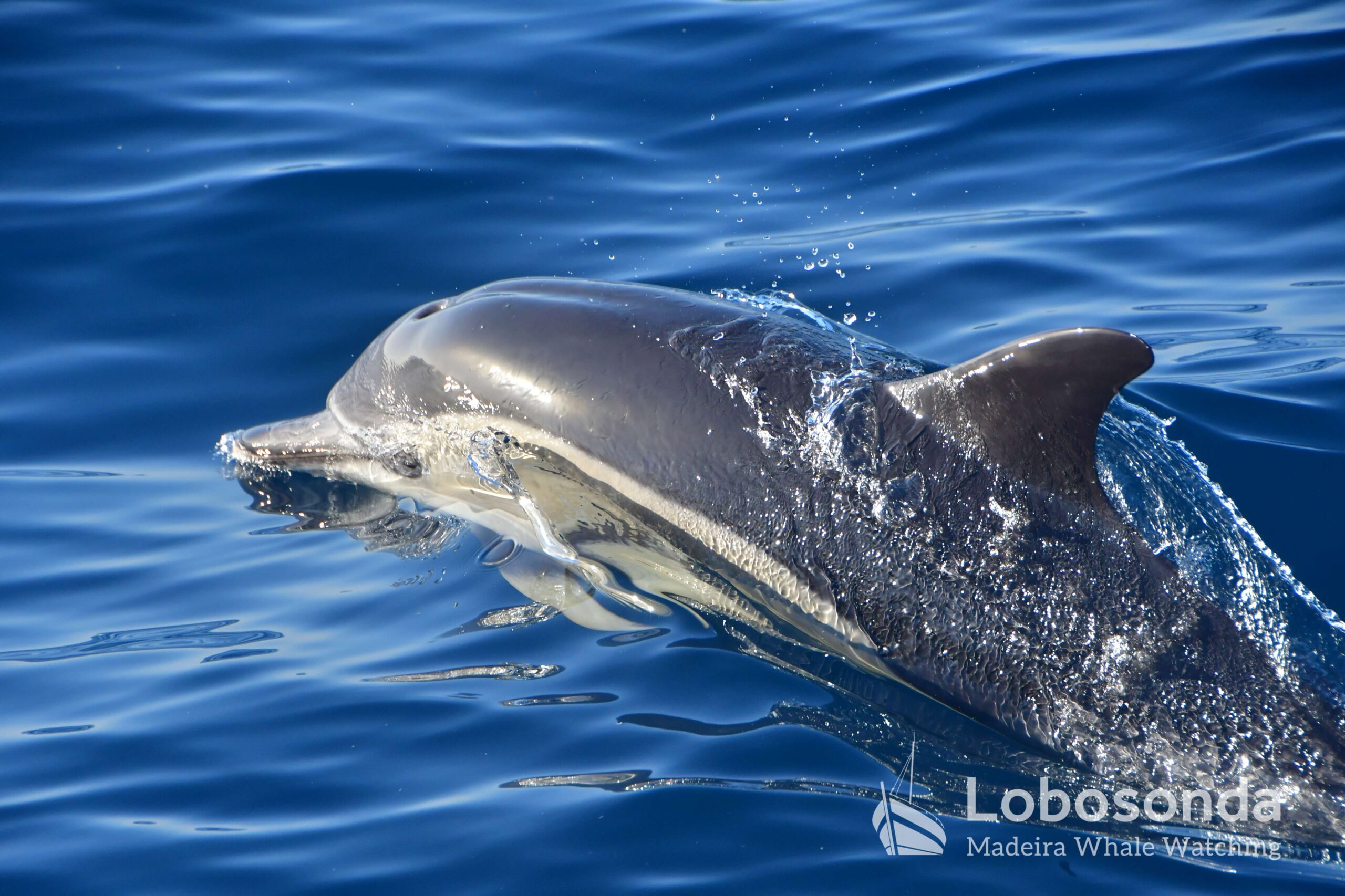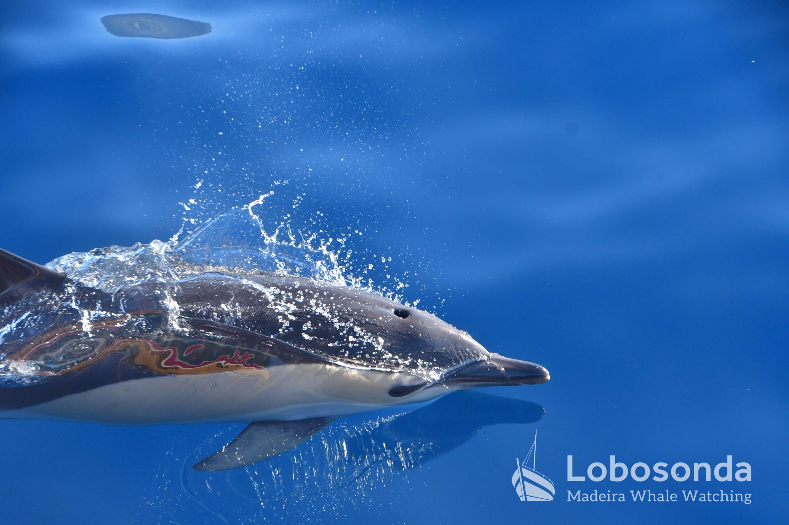 Our Friday was filled with sightings of beautiful Short-beaked common dolphins (Delphinus delphis) on a beautiful, flat ocean. The glassy, calm waters and bright sunlight truly made it feel like a summers day today, with conditions allowing beautiful shots of these ornamental dolphins as well as of other visitors to our waters at this time of the year. Other encounters included a lovely sighting of Bottlenose dolphins (Tursiops truncatus) and Striped dolphins (Stenella coeruleoalba).