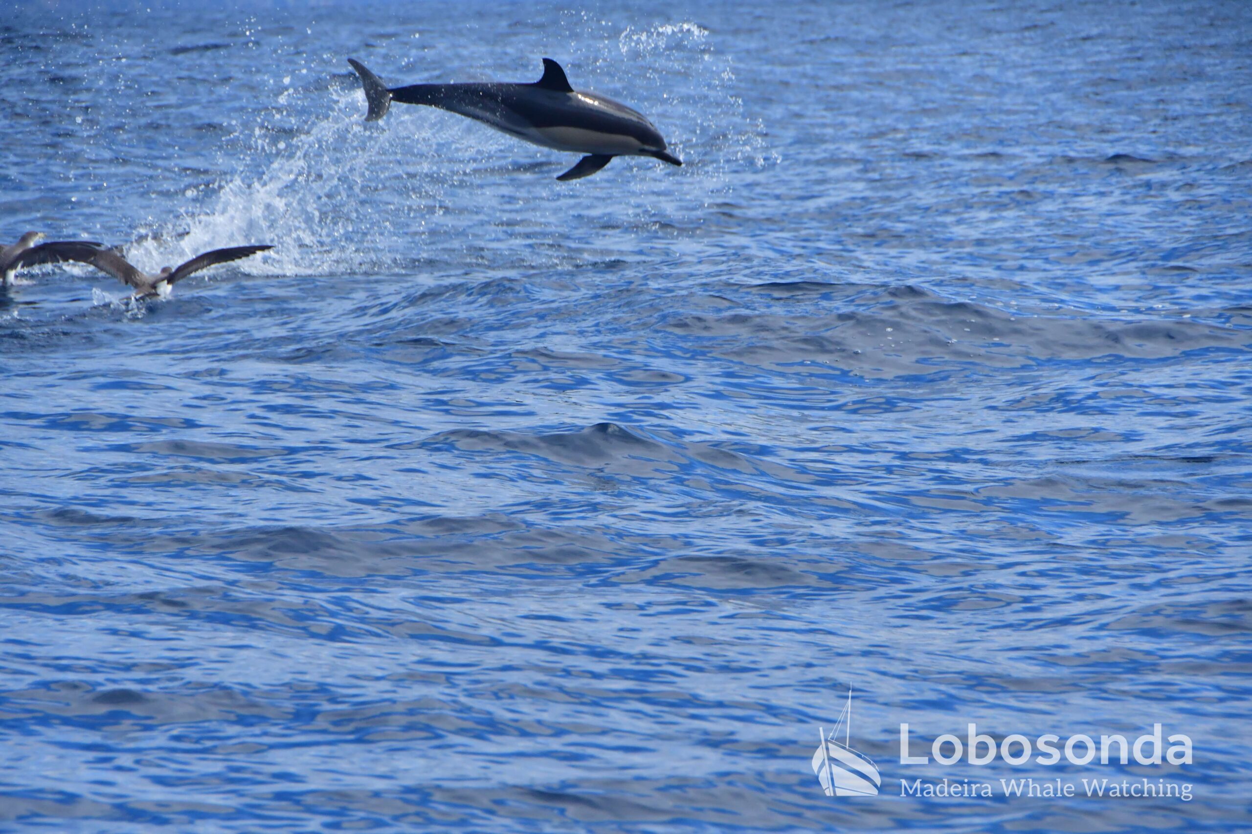 Later we encountered a group of short-beaked common dolphins (Delphinus delphis) fully focused on their hunt.