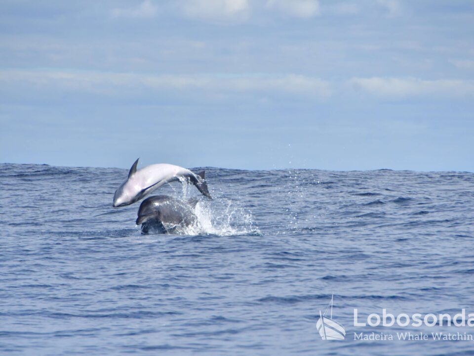 After a stormy, rainy Monday we were curious about what we would expect out at sea. A wild sea, in which water masses are moved, of course also a momentum in the whole ecosystem, so we were hoping for plenty of animals. This hope has definitely been fulfilled in a wonderful way today. Wet and over the calm sea, Pilot whales (Globicephala macrorhynchus) and Bottlenose dolphins (Tursiops truncatus) spread out. As far as the eye could see, one could see the differently shaped dorsal fins of the two species.