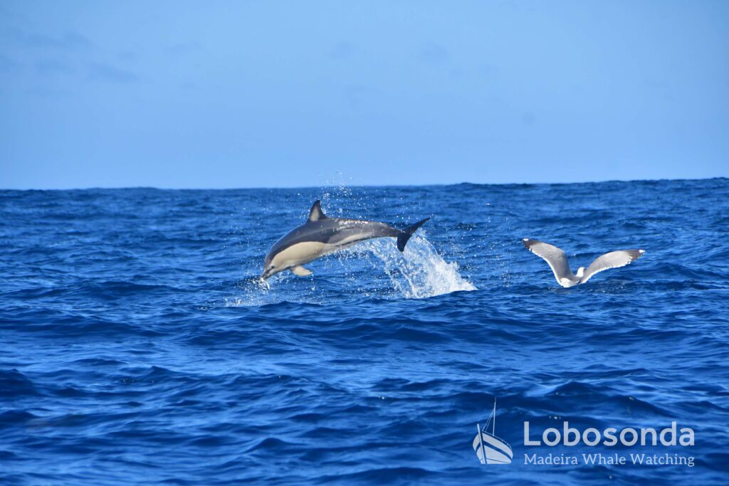 It was a long trip this morning, but our guests had a close, intense encounter with Short-finned pilot whales (Globicephala macrorhynchus). As we went out there were white foam caps on the horizon, but by the time we got back they had spread. So the return journey was a bit bumpy for us. Sometimes the weather calms down again. So we hoped that we would still be able to do the second tour with the Ribeira Brava. Unfortunately this was not possible. We had to cancel. In such cases we realize how dependent we are on nature’s benevolence. But the safety and well-being of our guests comes first. Our Stenella is a different case; it can often still be used when our Ribeira Brava has to stay in port.