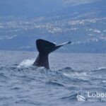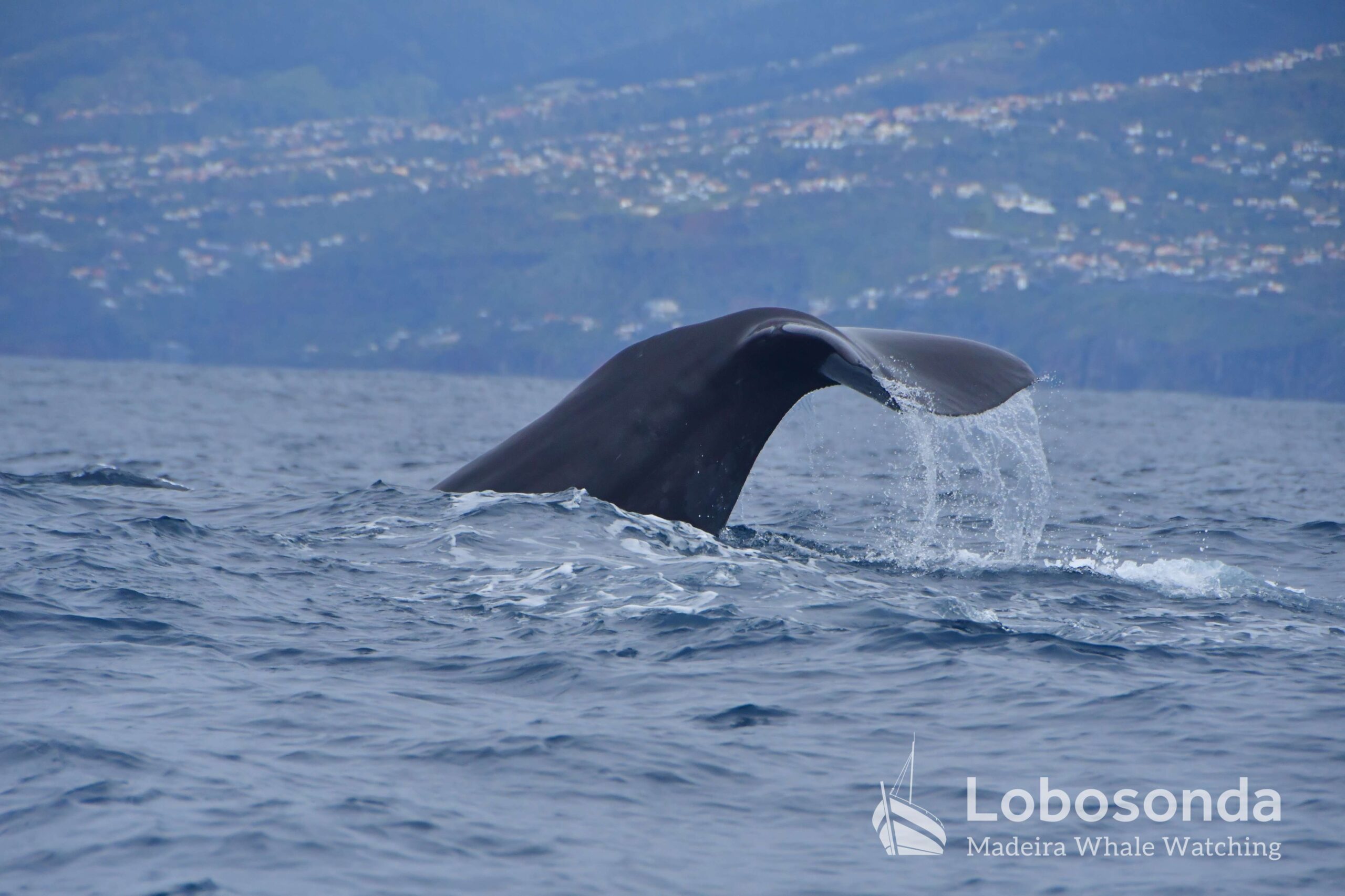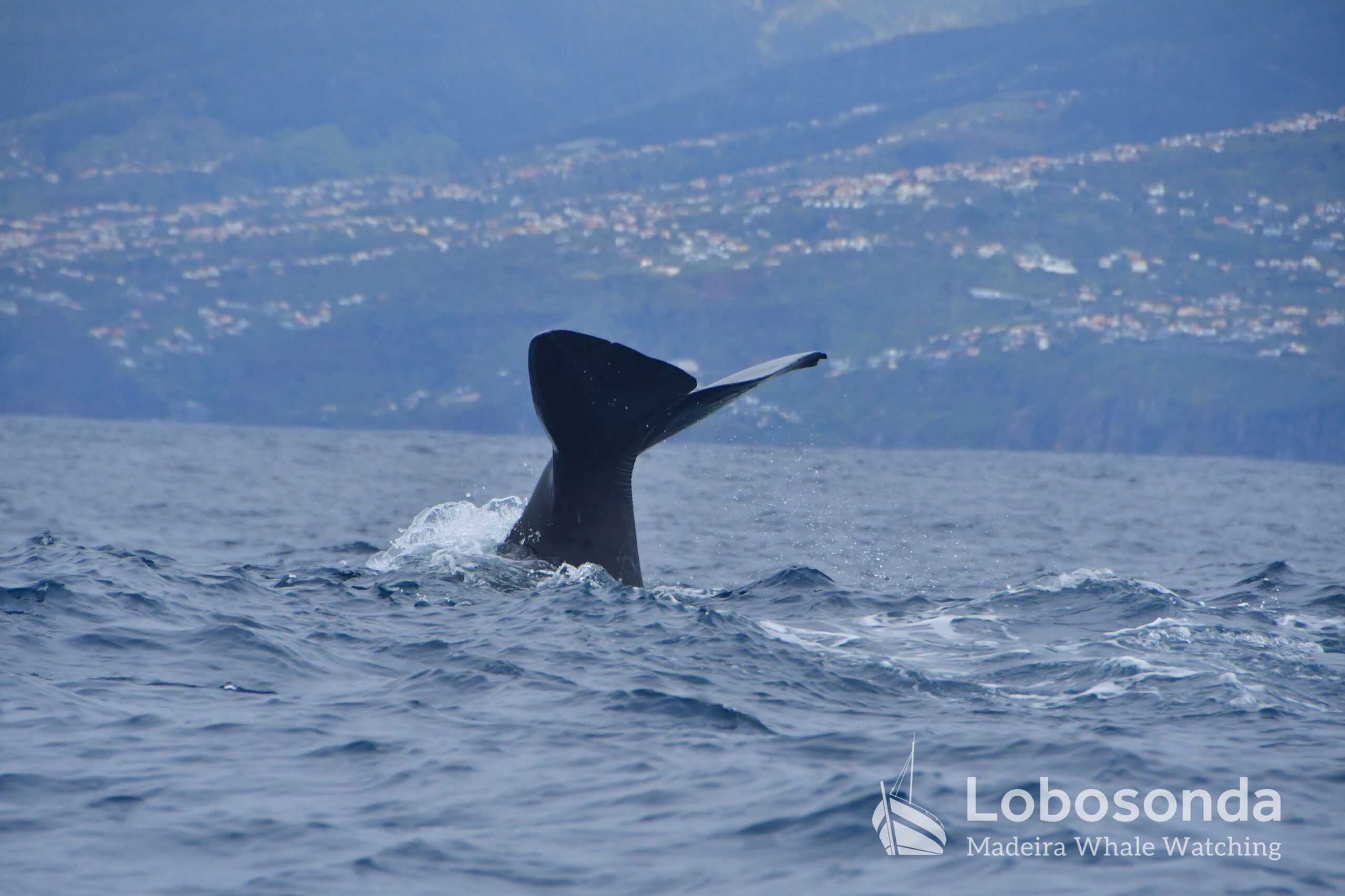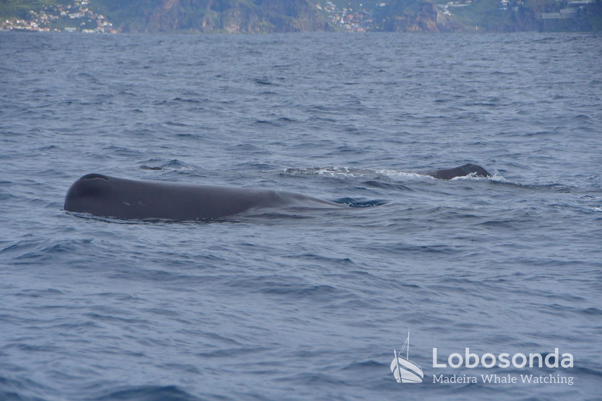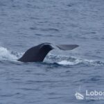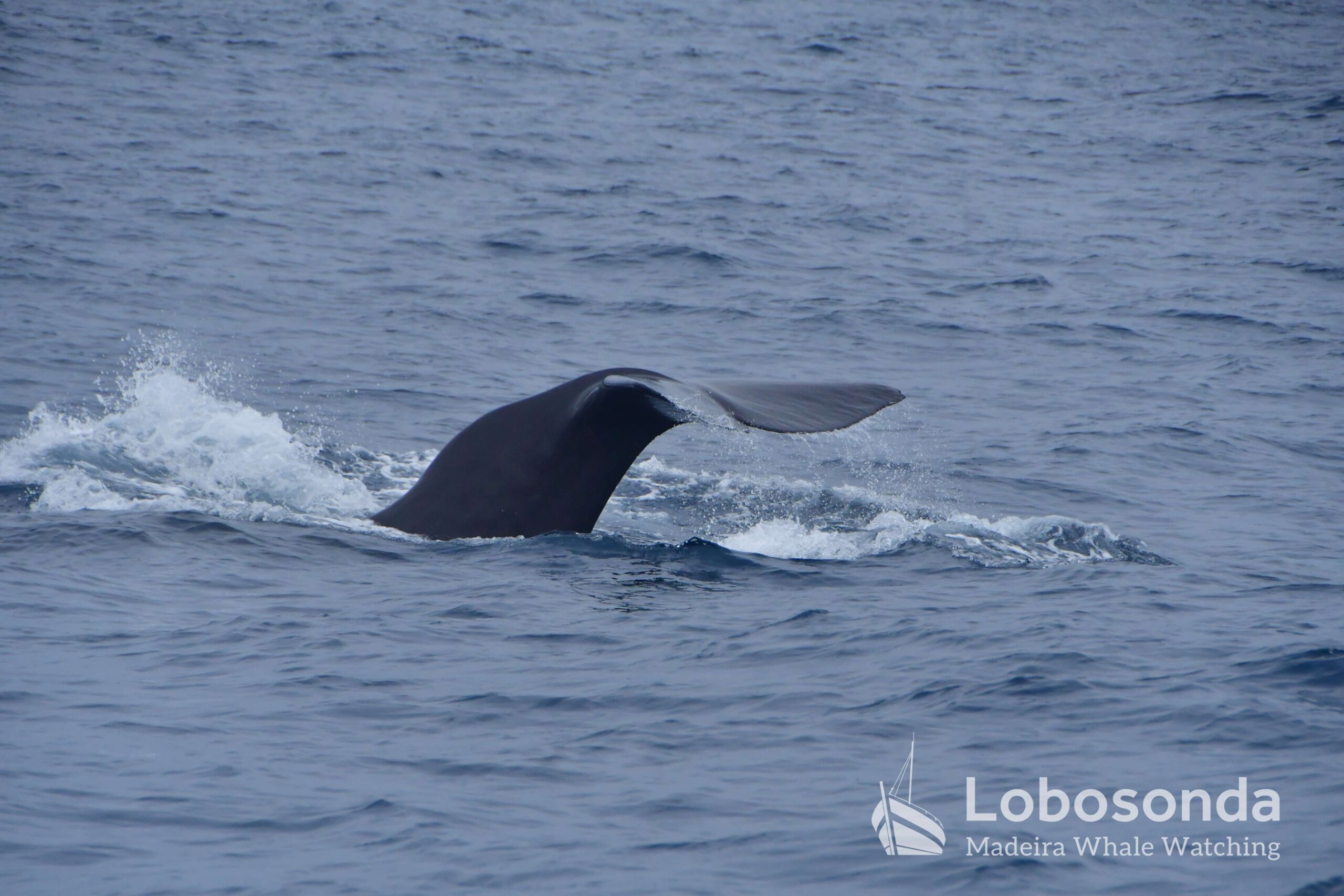 The three Sperm whales (Physeter macrocephalus) we encountered reacted calmly to our arrival. Unimpressed, they continued on their way and, in the end, lifted their enormous flukes with cool elegance before disappearing into the depths. The Sperm whale is the largest species of toothed whale and can reach lengths of over 15 meters. It is characterized by its large, block-shaped head, which makes up a significant portion of its body length. Sperm whales are known for their deep and prolonged dives, during which they hunt mainly for squid in great ocean depths. Their blow is directed forward at an angle and serves as an important identification feature. Females and juveniles live in social groups, while adult males are often solitary.