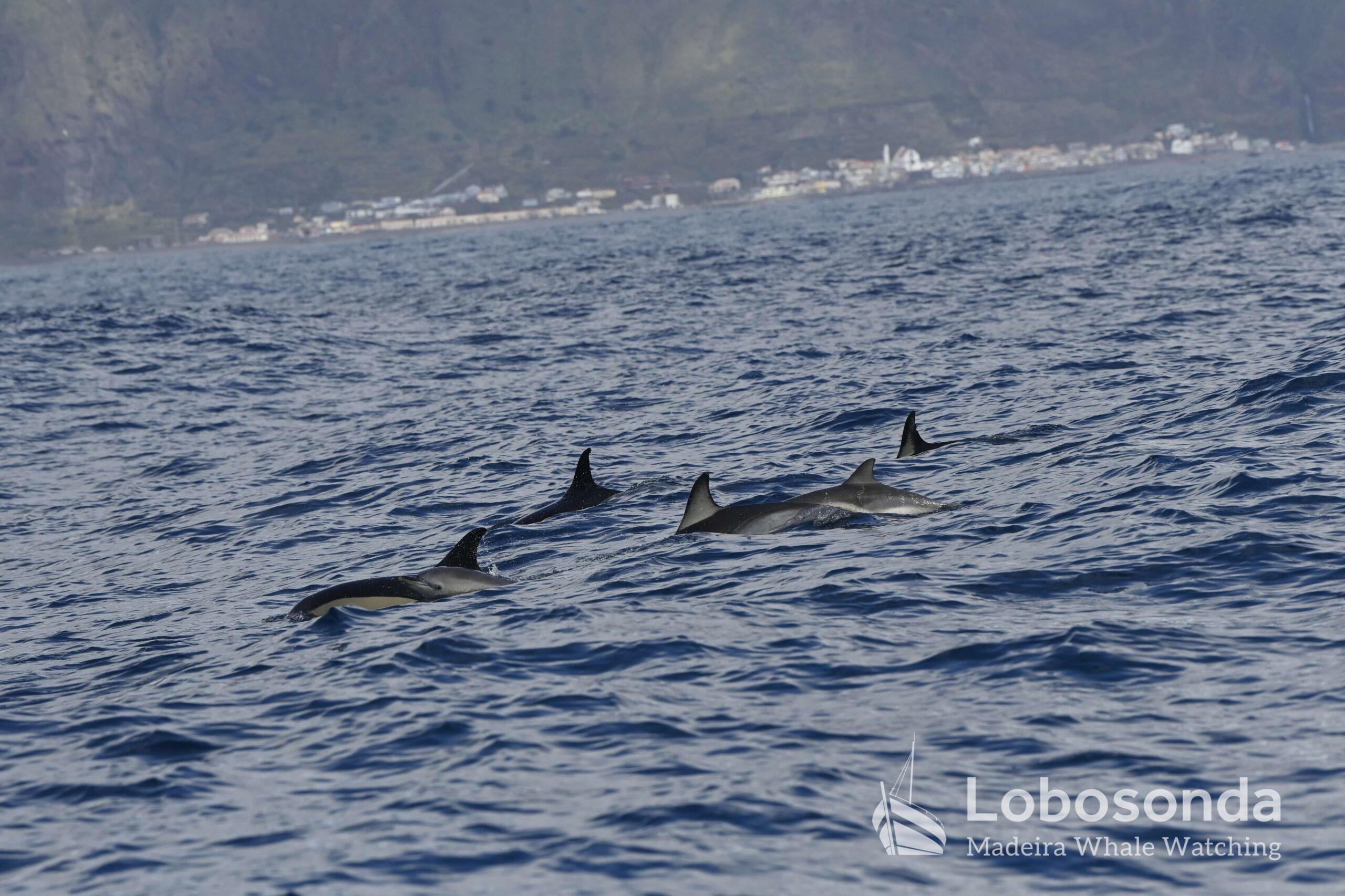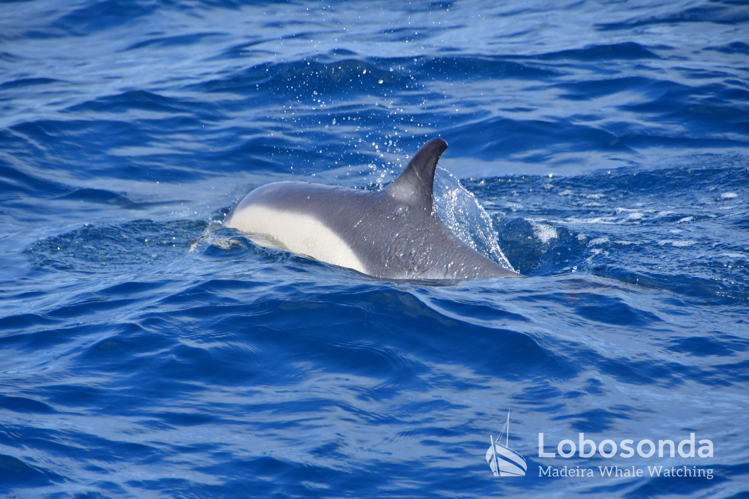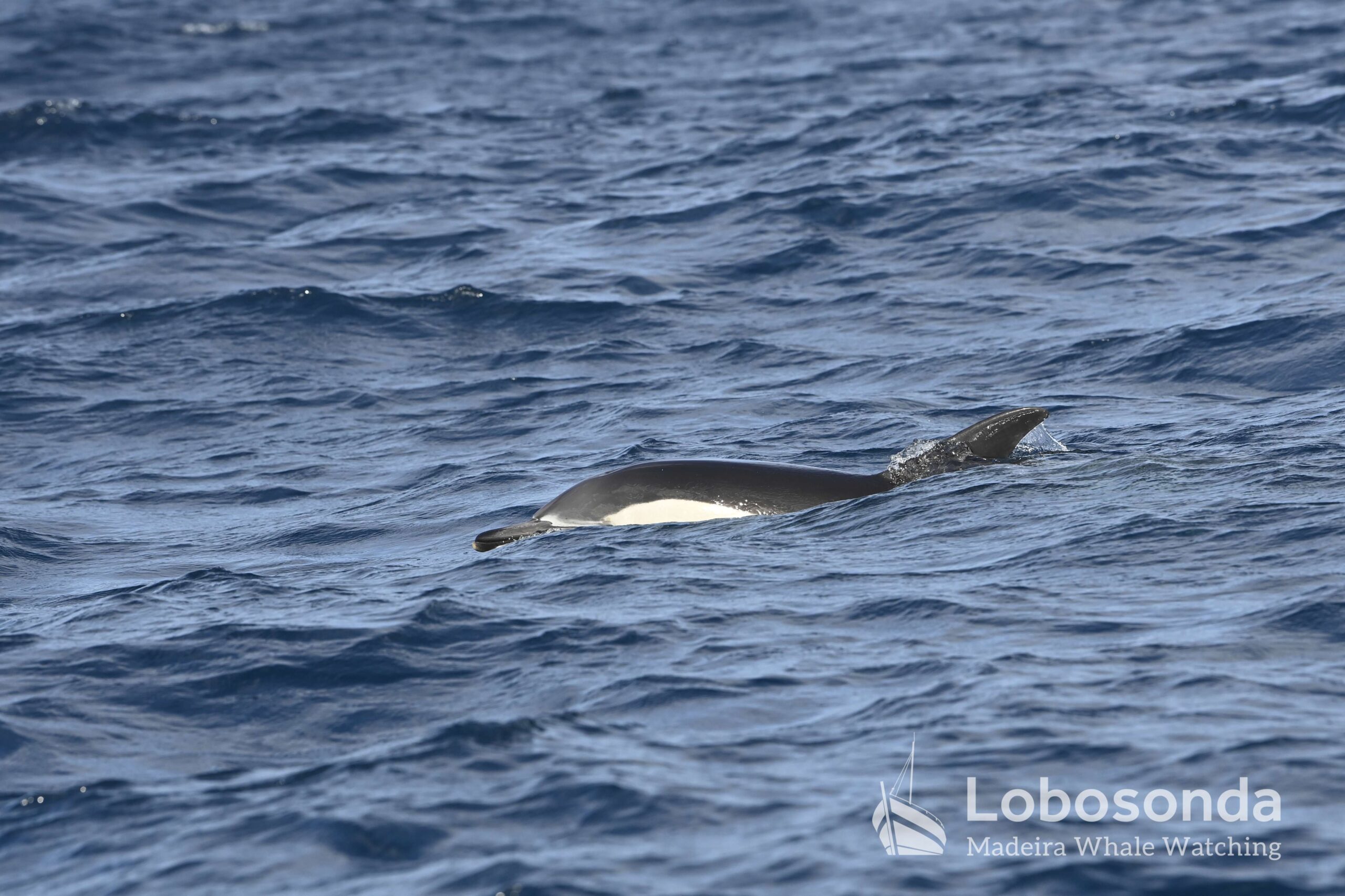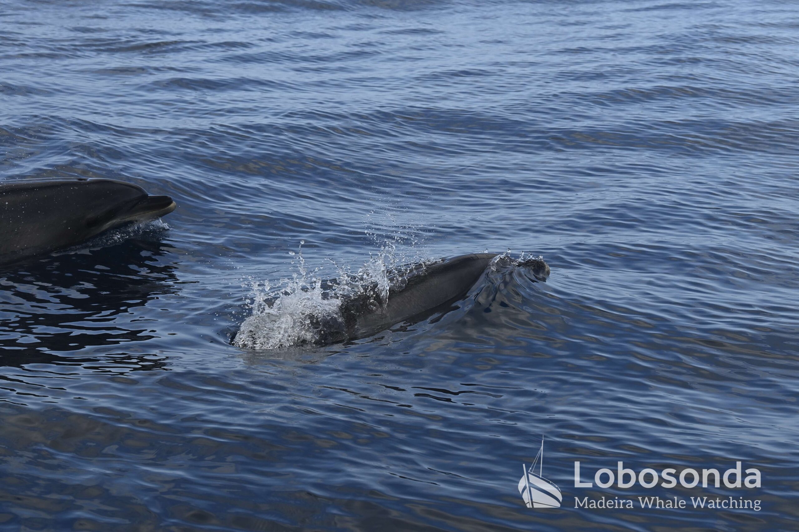 Despite some incoming wind I’d say we had quite the lucky day out on the ocean, with long searches always ending with a sighting of dolphins. Today we encountered a few dispersed, small groups of Short-beaked common dolphins (Delphinus delphis) as well as a pod of Bottlenose dolphins (Tursiops truncatus).