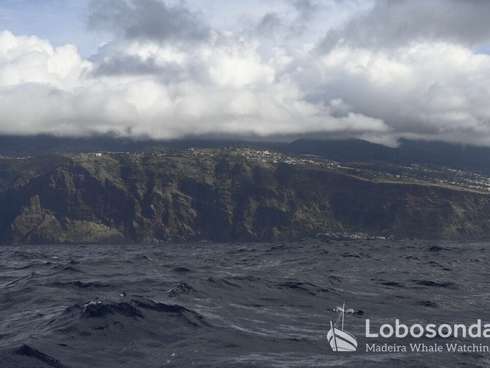 It was dynamic today! The wind blew in gusts across a turbulent sea. A Sperm whale (Physeter macrocephalus) breached several times. Once even very close, but on the photo I could only immortalize the splash. Wouldn’t it be nice if there was a breach with advance notice :). Bottlenose dolphins (Tursiops truncatus) surfed the wild waves or interacted with the Sperm whale, who breached before. It is difficult to say whether this whale enjoyed contact with the dolphins or felt irritated. He started to slap his tail. Since the density of water is higher, sound is transmitted much better in the liquid element than in air. Sound travels 1500 meters per second in the sea, so it is five times faster as in air. To inform other group members where you are, or to “drum up” the others, a bang like this with the tail is very useful. Of course, the whale could have expressed its displeasure with the dolphins at their intrusiveness. The loud bang on the surface of the sea is, on the one hand, not pleasant for the sensitive hearing of the small marine mammals and, on the other hand, there is a strong force in such a tail slap. Who would want to be nearby? Of course, we cannot really know what it was all about.