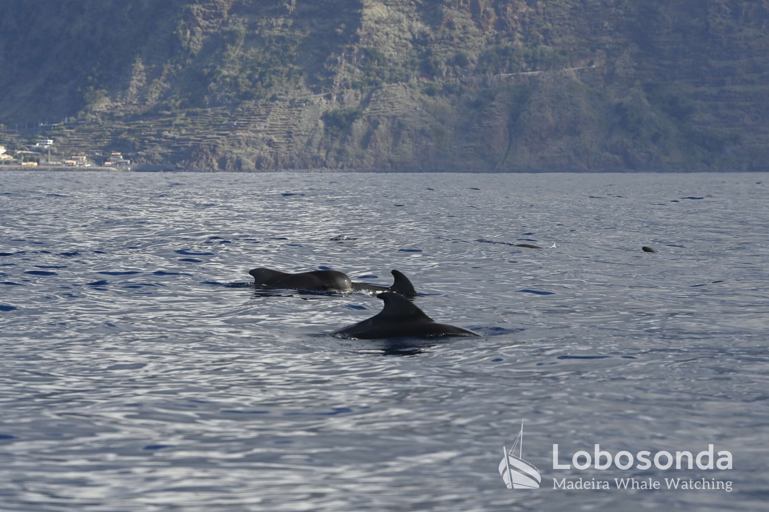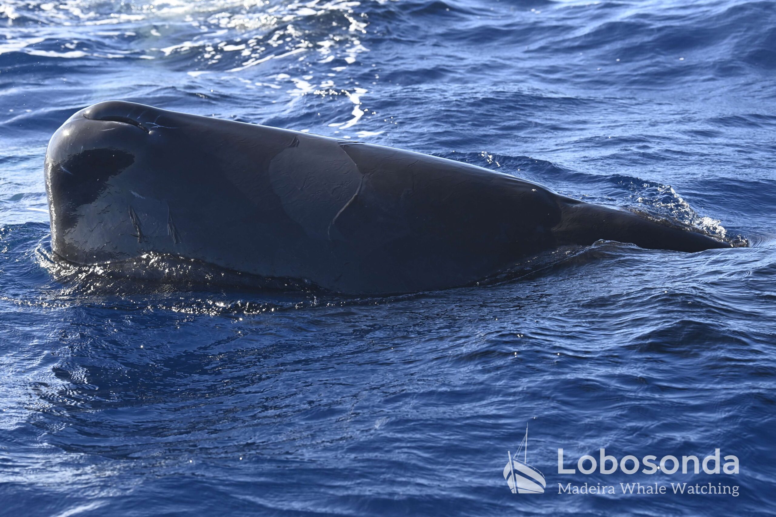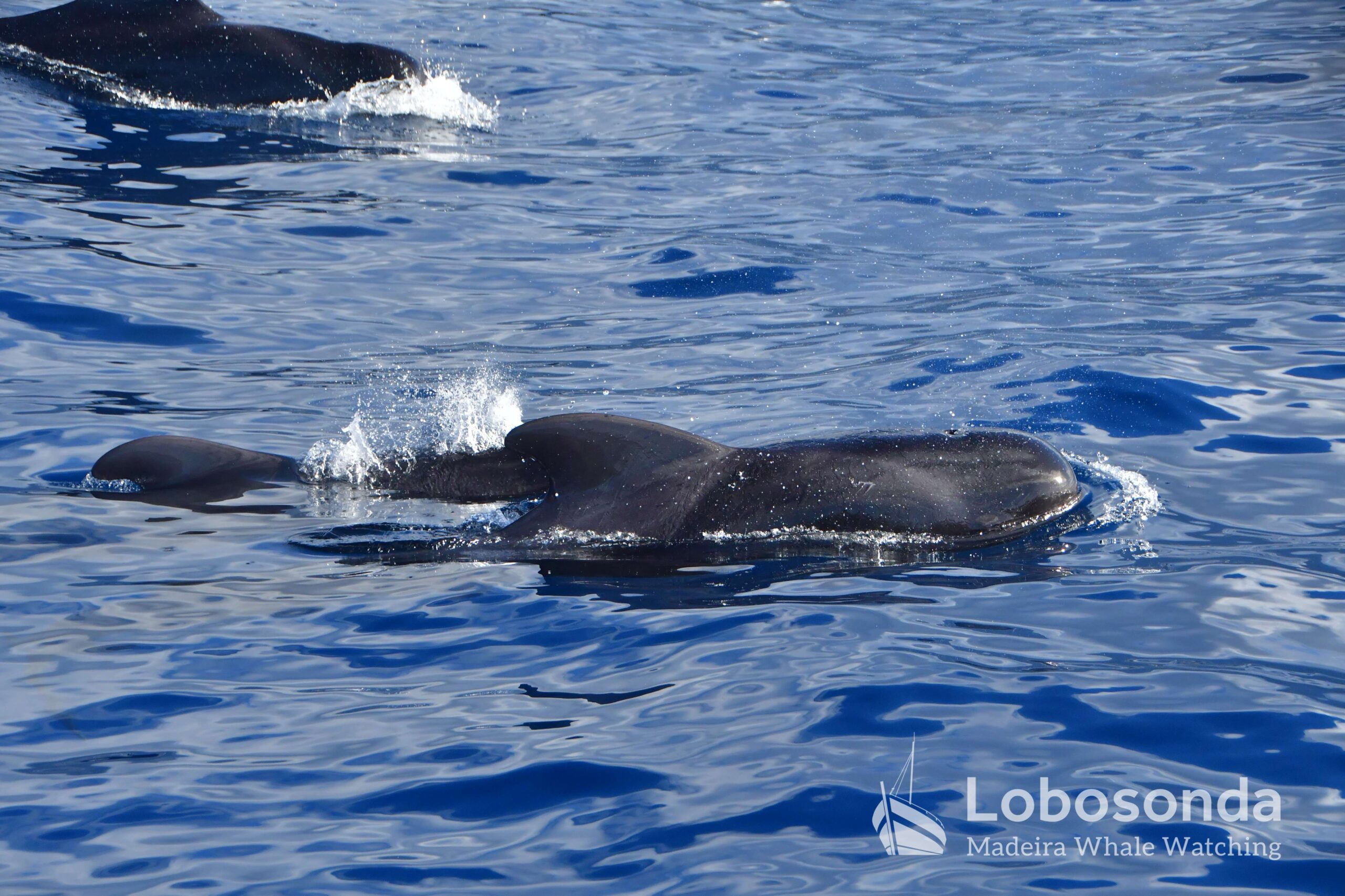 Today the sun was shining and the ocean was calm so perfect weather for another day of trips. This time we god lucky to spot some species which take family very important. I speak about the Short-finned pilot whales (Globicephala macrorhynchus) and Sperm whales (Physeter macrocephalus). These animals live in family groups and all participate in caring for the babies and offsprings. Both species are deep diving animals reaching considerable depths when they go hunting for squids in the deep sea. The offsprings can’t reach those depths. That is why they stay at the surface and wait for the adults to come back., but they are not alone. There is always one adult nearby acting as a babysitter for all. This might be the mother, aunt, older brother or sister and the role is shared between all. When they go hunting the next time another will stay back as babysitter while the last one can fill its stomach in the deep sea.