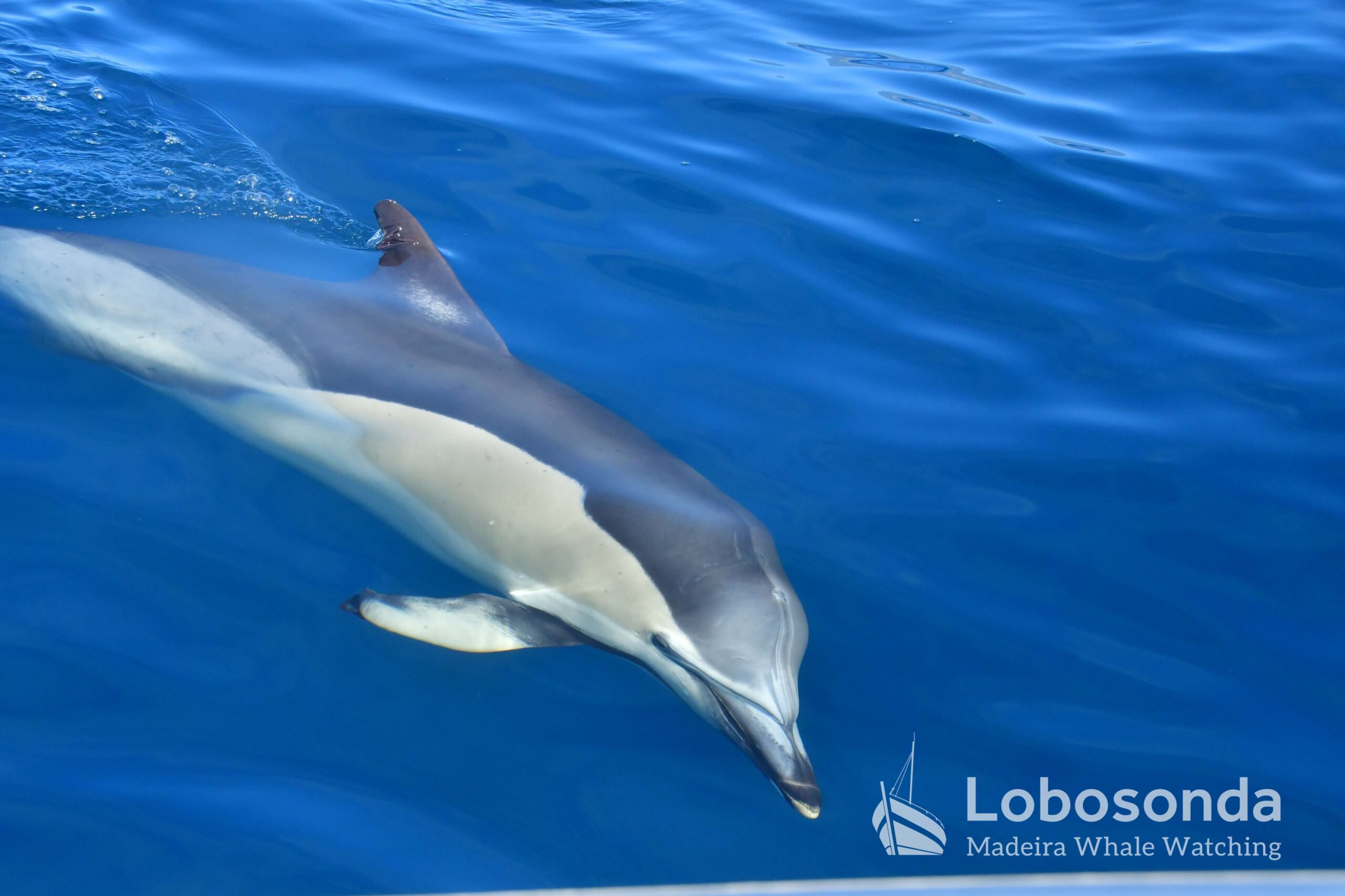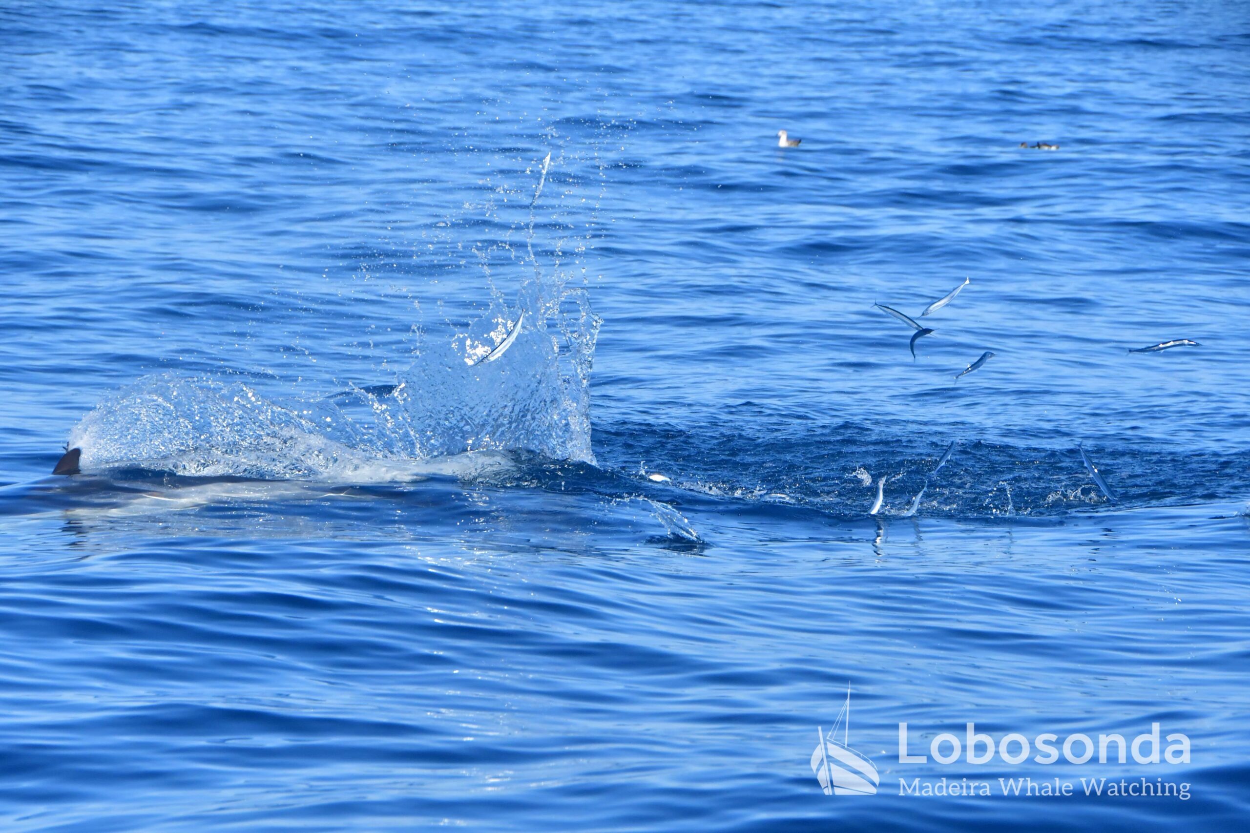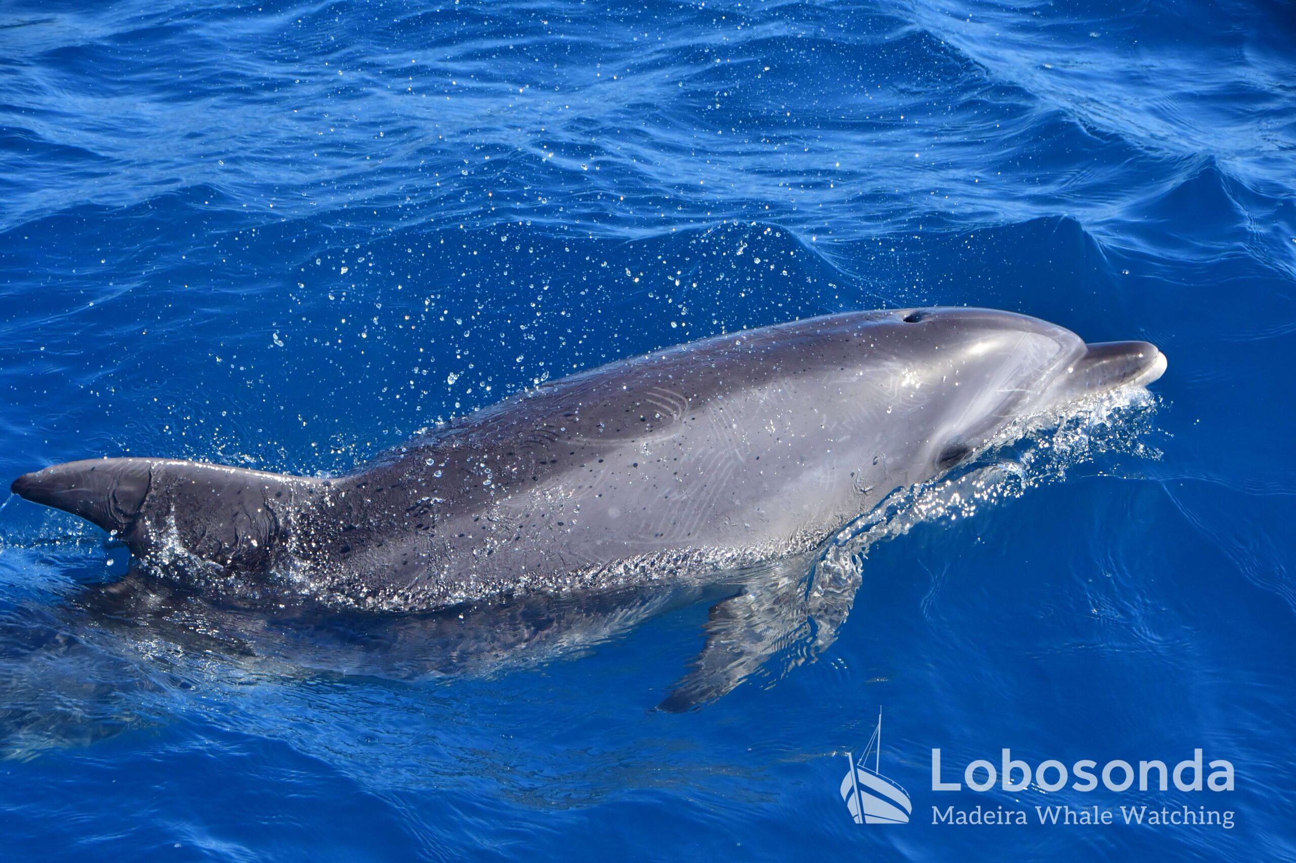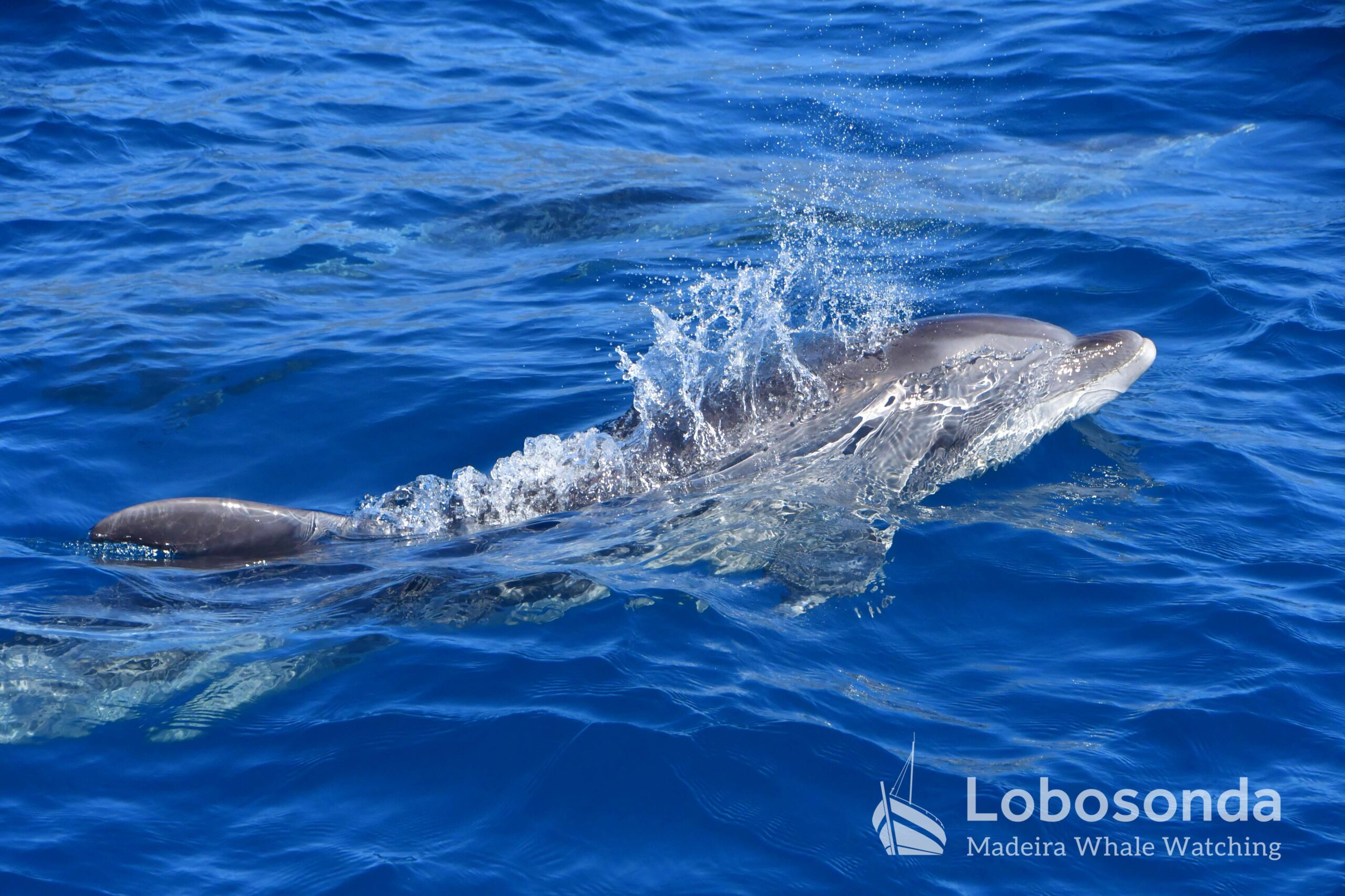 On both tours and different boats today we had both Bottlenose dolphins (Tursiops truncatus) and Short-beaked common dolphins (Delphinus delphis). In the morning, the Bottlenose dolphins were a little more reserved. At midday they wanted to accompany the traditional fishing boat in the bow wave. It seems to me that the Bottlenose dolphins have a preference for the Ribeira Brava anyway. Is it because of the thrust? Or is it because it is easier for the guests on this boat to admire them? Maybe they like it?