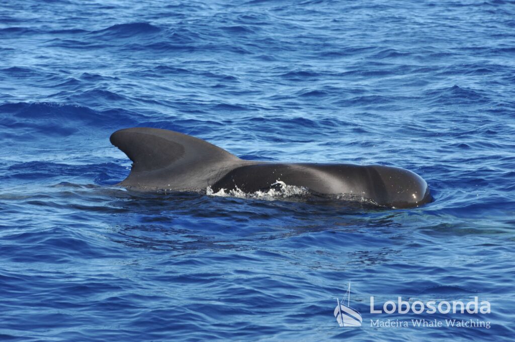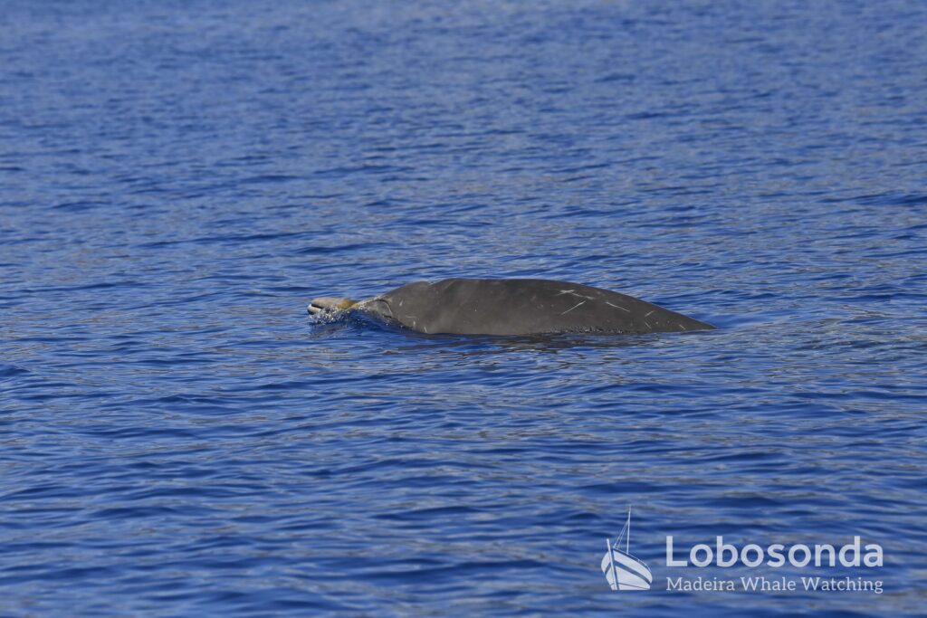 Today our traditional boat set off onto a placid ocean accompanied by a lot of sunshine, prompting many of our guests to use some of our snazzy sombreros on board. These summery conditions were soon complemented with a sighting of our charming summer dolphins, the Atlantic Spotted dolphins (Stenella frontalis). Being small delphinids, this species often occurs in larger groups and their typical interactive nature often means that our boats are completely surrounded by them during an encounter. Today the situation wasn’t any different; the spotted leapt swiftly around the bow of our Ribeira Brava, gleefully gliding to and fro.