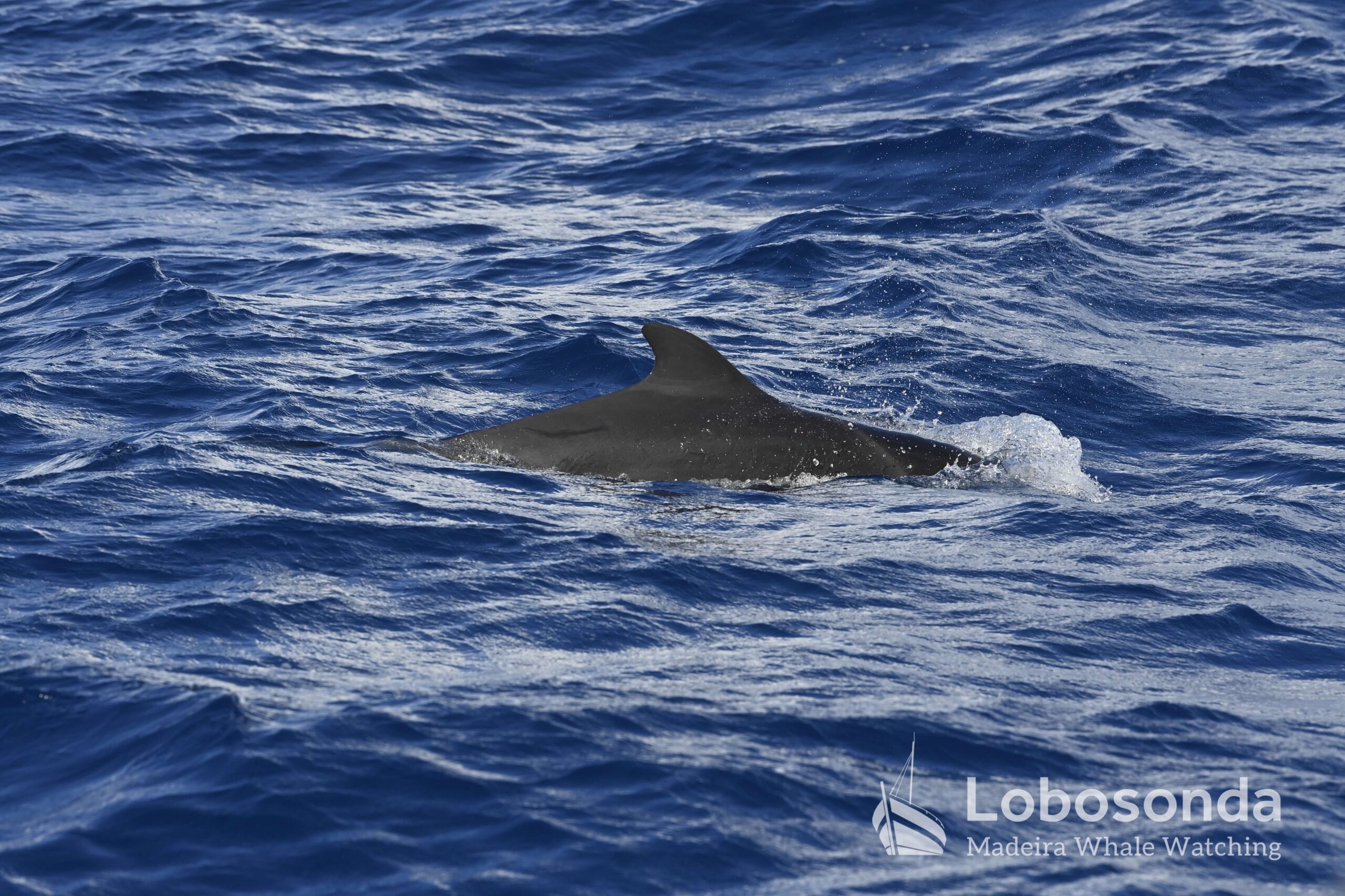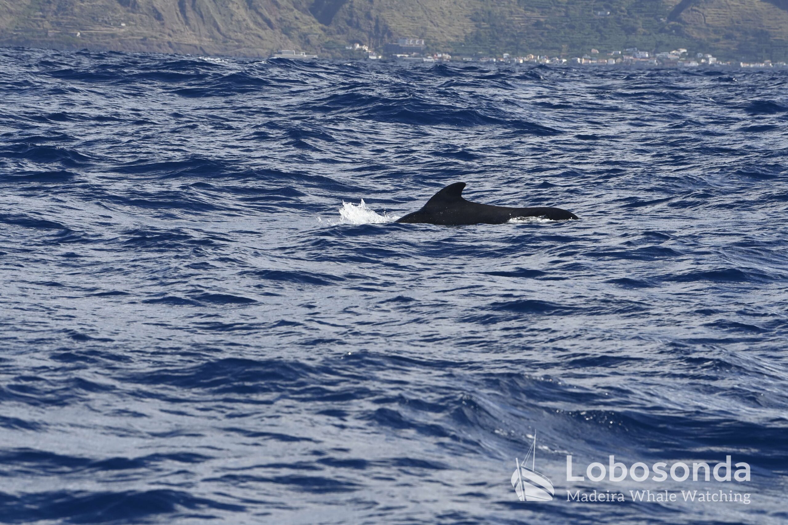 Nach vielen Tagen stürmischen Wetters konnten wir heute endlich wieder aufs Meer hinausfahren. Es gab noch etwas Wellengang, der von den starken Winden der letzten Tage herrührte. Unter diesen Bedingungen war es nicht ganz einfach, Tiere im Meer zu finden, aber Silviano, unser Spotter, hat großartige Arbeit geleistet und einige Kurzflossen-Pilotwale (Globicephala macrorhynchus) und Große Tümmler (Tursiops truncatus) entdeckt. Es war nicht ganz einfach, die Tiere zu beobachten, da sie und auch wir immer wieder in den Wellentälern verschwanden. Beide Arten kommen häufig in der Umgebung von Madeira vor. Die Pilotwale nutzen die tiefen Gewässer rund um die Insel, um nach Nahrung zu jagen, während die sehr anpassungsfähigen Großen Tümmler in allen Ozeanen, von tropischen bis zu gemäßigten Meeren, gedeihen. Beide sind soziale Arten, wobei die Pilotwale in Familiengruppen leben, während die Großen Tümmler eher mit ihren Freunden zusammenleben.