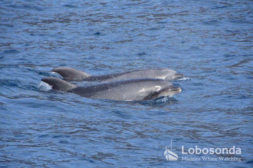 Ganz unterschiedliche Erfahrungen machten die Gäste der Ribeira Brava heute Nachmittag. Unsere küstennahen Großen Tümmler waren im Ruhemodus und verhielten sich zurückhaltend. Da einige Tiere kontinuierlich mit den Fluken auf die Oberfläche schlugen, war das für uns ein Zeichen, sie zu verlassen. Unser Kontakt mit den Atlantischen Fleckendelfinen verlief dann ganz anders. Während wir gemeinsam in die selbe Richtung zogen, konnten wir folgende Verhaltensweisen beobachten: Bugwellen reiten, Sprünge, Sozialisieren und Paarungen.