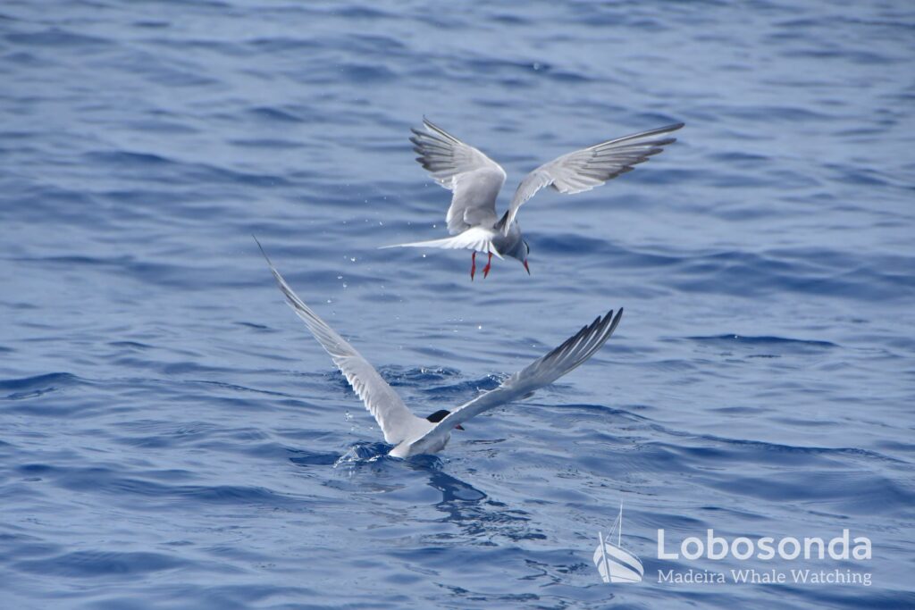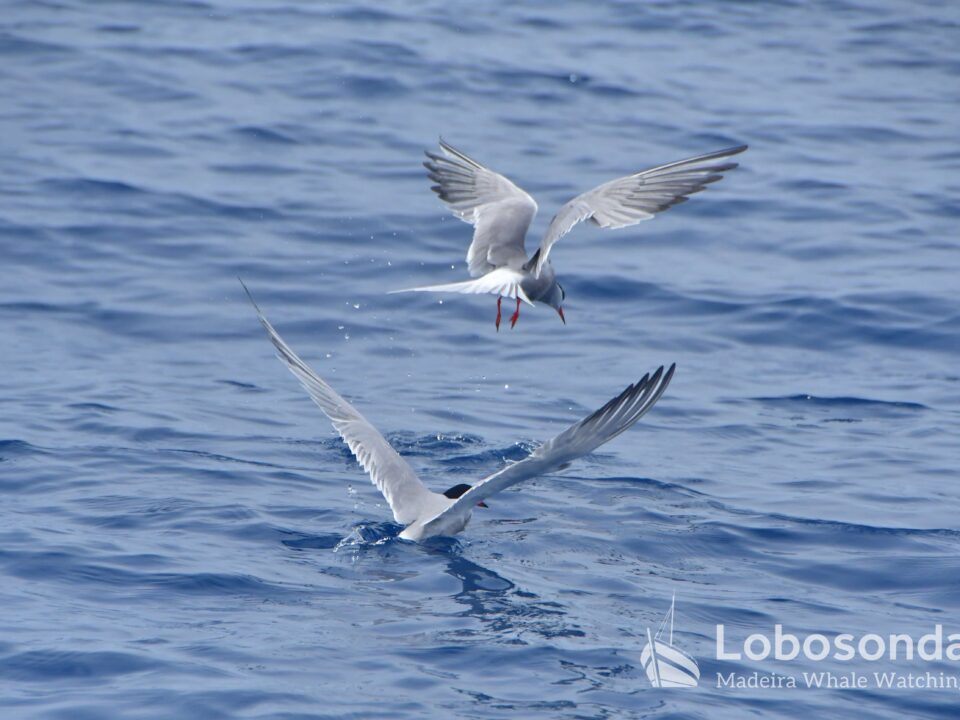 Die Nachmittagsgruppe dieser Art enthielt sogar ein junges Kalb, das neben seinen älteren Kollegen perfekt in eine Linie schwamm. Die Gruppen von Tümmler, denen wir begegneten, enthielten auch ein junges Kalb, das von seiner Mutter gesäugt wurde, als wir mit Bewunderung zuschauten. Diese schönen Sichtungen auf beiden Touren wurden durch eine kurze Begegnung mit einer Unechten Karettschildkröte (Caretta caretta) ergänzt, die an der Oberfläche Sonne tankte. Was für ein wundervoller Tag auf dem Atlantik!