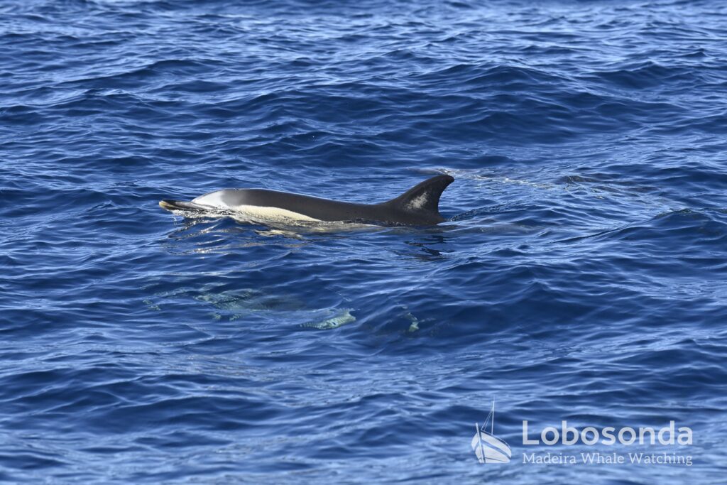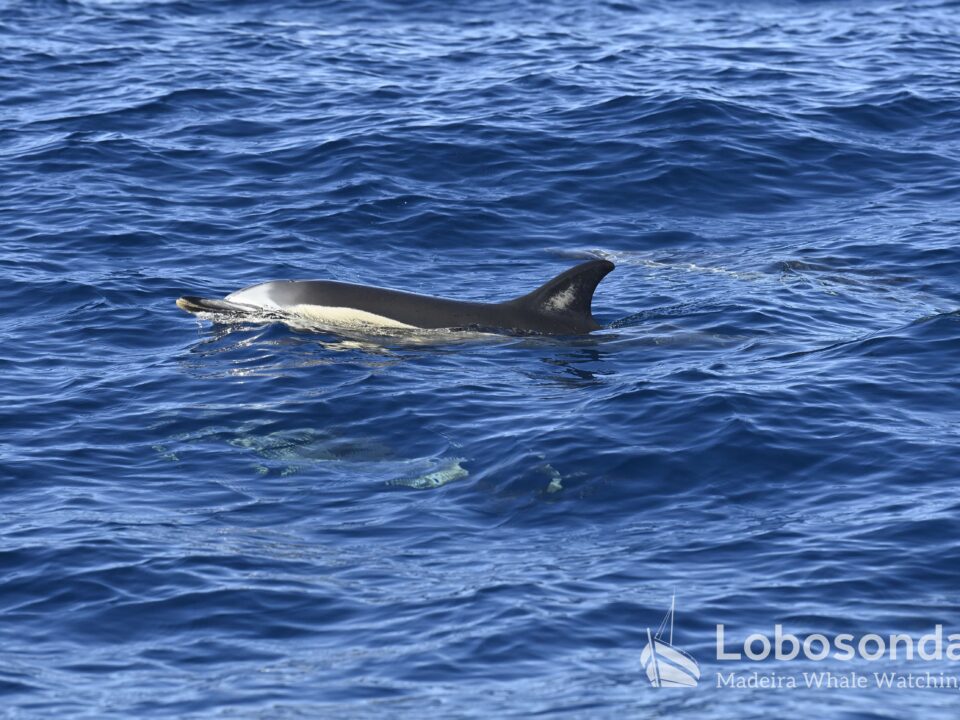 Die große Gruppe Atlantischer Fleckendelfine (Stenella frontalis), die wir heute Vormittag auf unsere Schnorcheltour trafen, passte ihre Geschwindigkeit an die winzigen Kälber, die an der Spitze der Schule unterwegs waren. Trotz ihrer Geschwindigkeit, waren einige Delfine an unsere Schnorchler sehr interessiert und näherten sich uns neugierig im Wasser…. Das hat uns natürlich sehr gefreut! Die zerstreute Gruppe von Rauzahndelfinen (Steno bredanensis), die wir heute vor dem Schnorcheln trafen, befand sich ebenfalls in Bewegung und die Tiere schneideten elegant durch die Wasseroberfläche als sie Richtung Südosten düsten.
