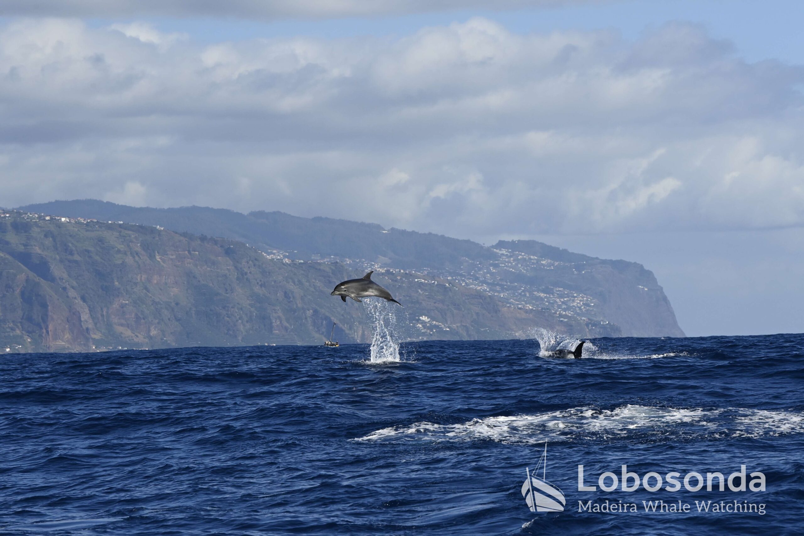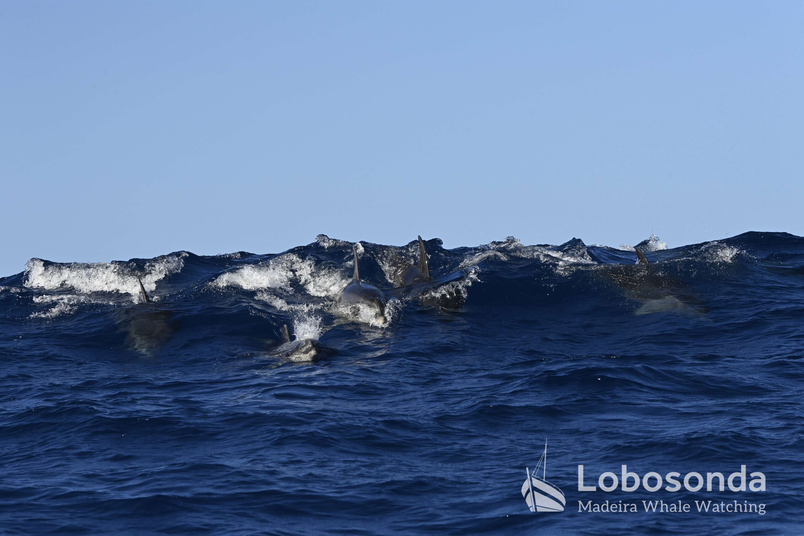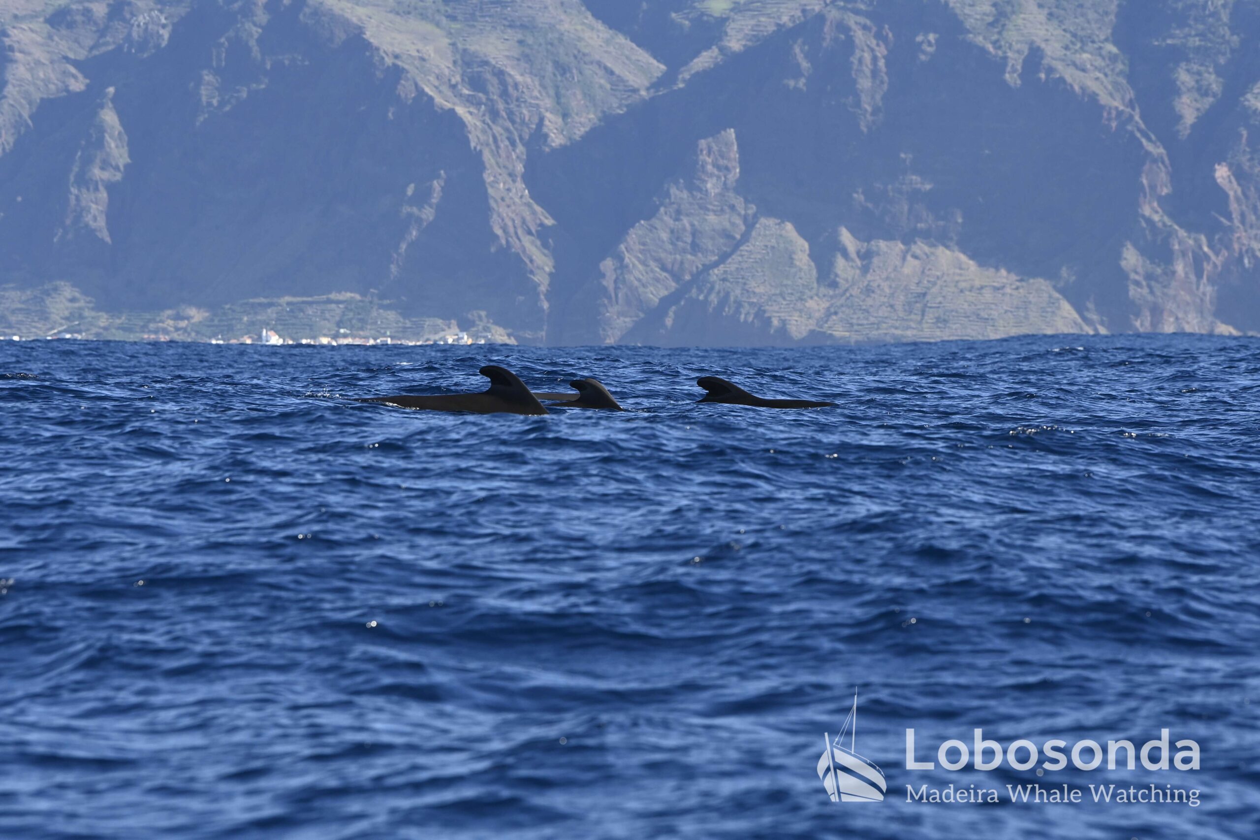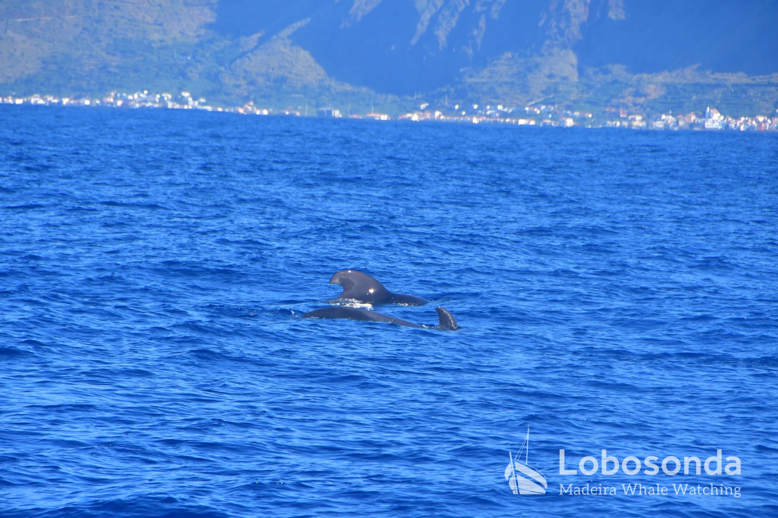 Die Sonne ging gerade unter, als wir von unserer letzten Stenella-Tour zurückkamen. Heute konnten wir drei verschiedene Arten von Walartigen beobachten. Am Morgen konnten die Gäste unsere Pottwale (Physeter macrocephalus) und einige Kurzflossen-Pilotwale (Globicephala macrorhynchus) bewundern. Beide Arten sind tief tauchende Tiere, die sich hauptsächlich von Tintenfischen und Kraken in der Tiefsee ernähren. Pottwale sind mit bis zu 18 m die größten Fleischfresser der Erde, während Pilotwale mit bis zu 7 m die zweitgrößte Delfinart sind.
