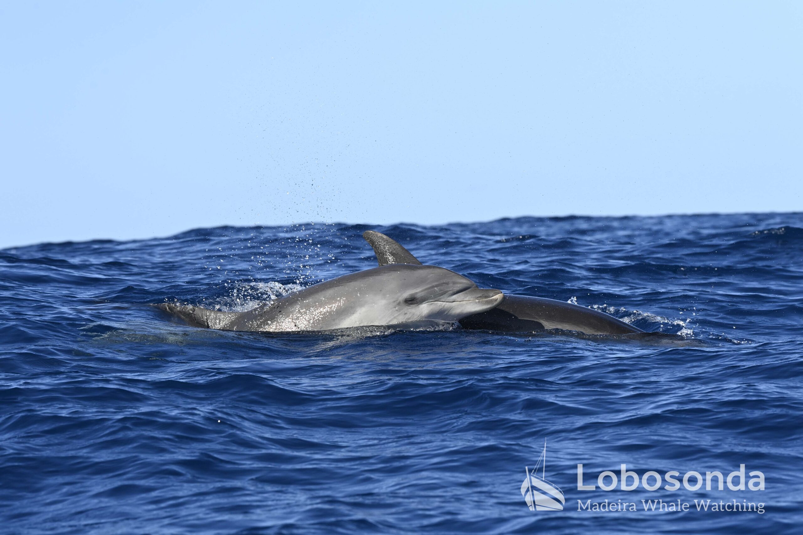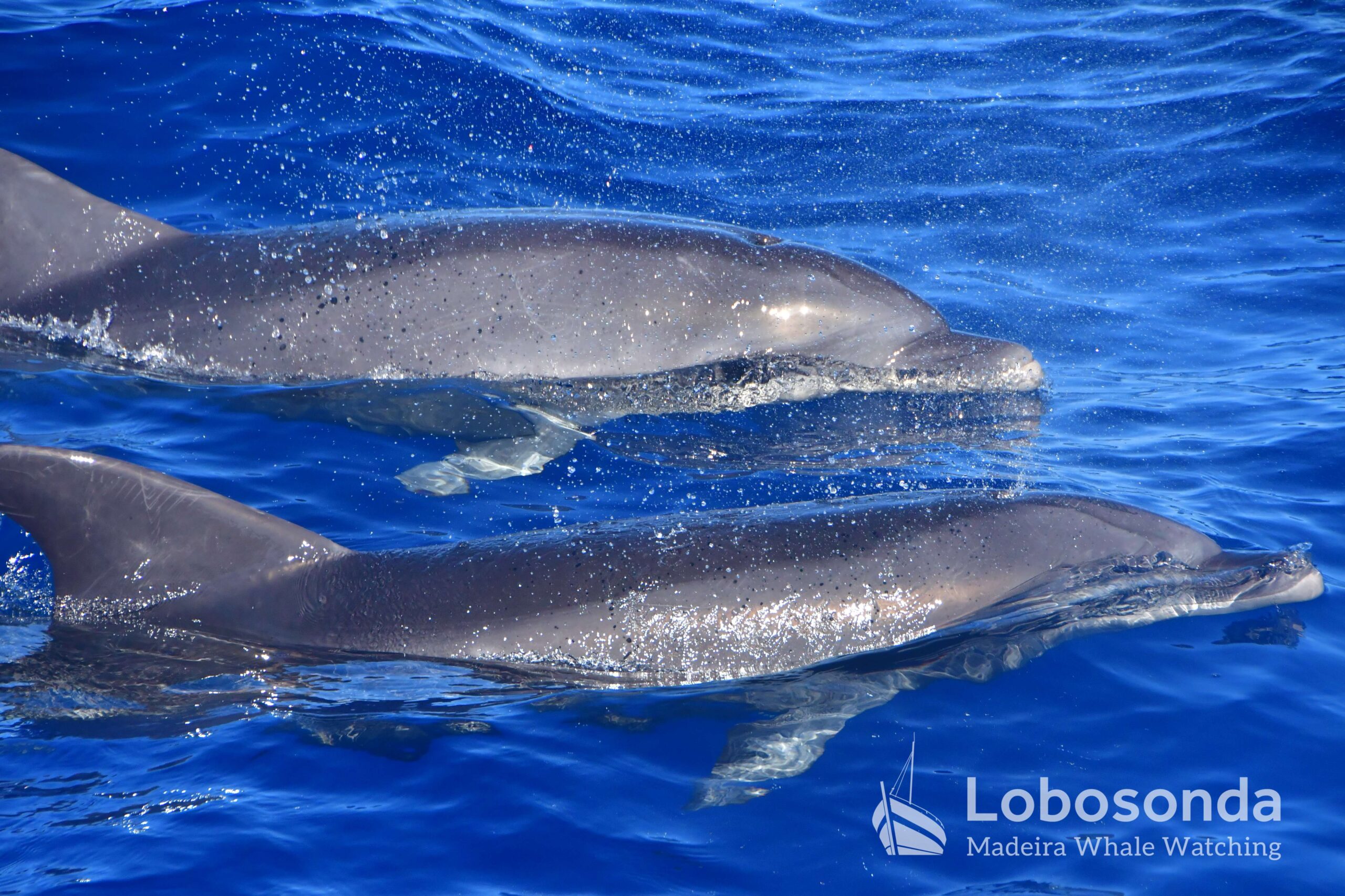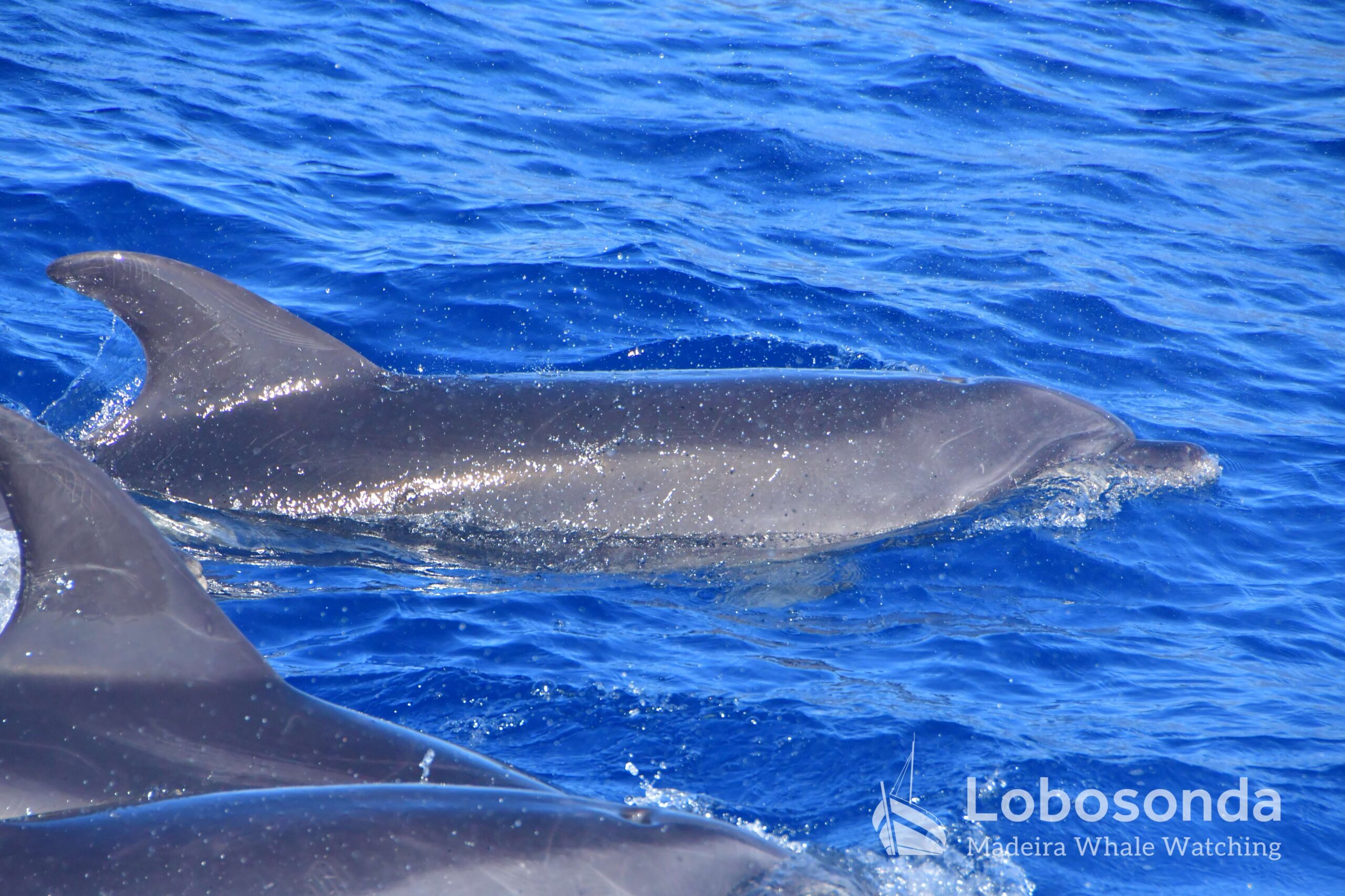 Auf den Nachmittagsfahrten begegneten wir einer anderen Art, unseren Großen Tümmlern (Tursiops truncatus). Diese Bewohner halten sich eher in den Oberflächengewässern auf, wo sie sich von allen möglichen Nahrungsquellen ernähren, die sie finden können, und sogar Fische von Fischerbooten stehlen. Sie gehören zu den intelligentesten Lebewesen im Meer und finden für fast jedes Problem eine Lösung.