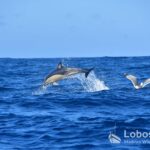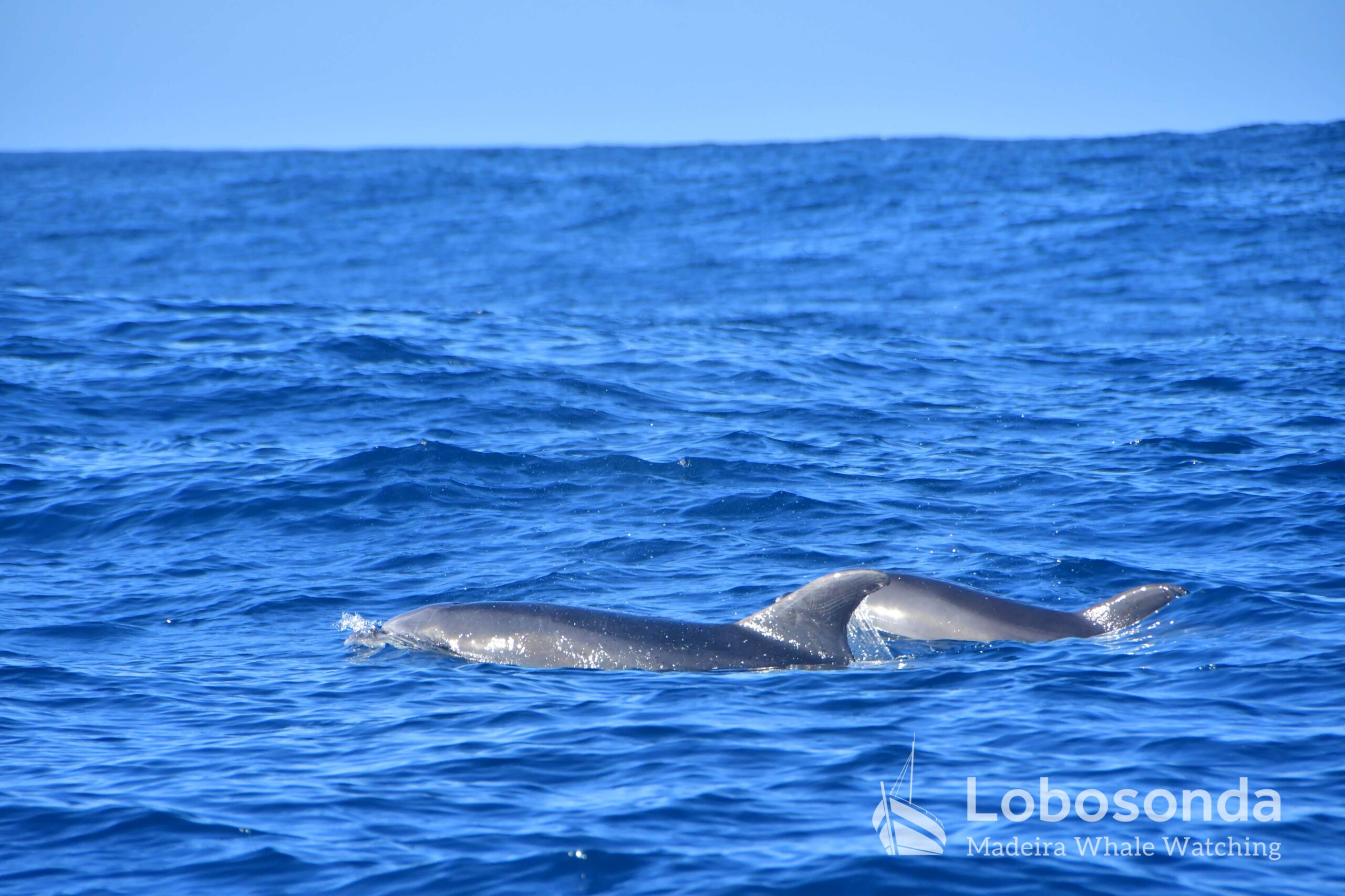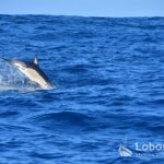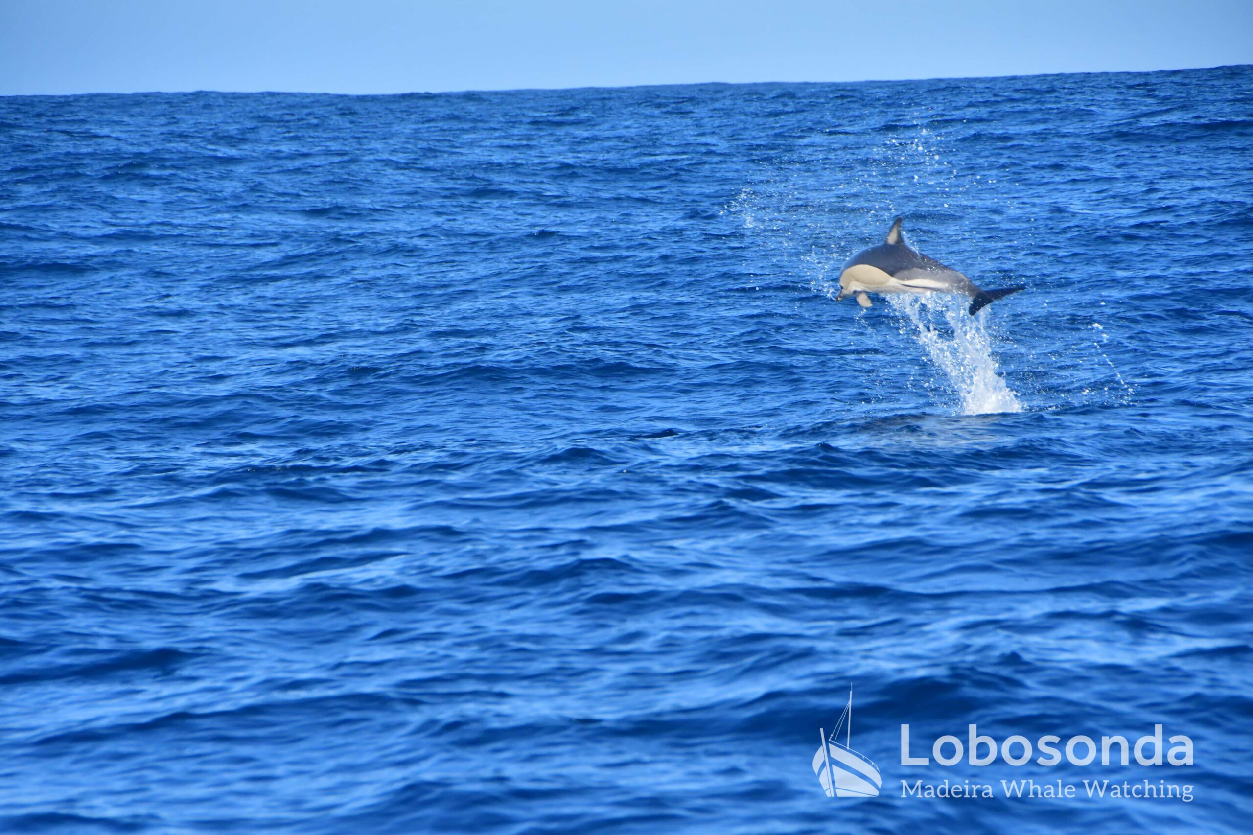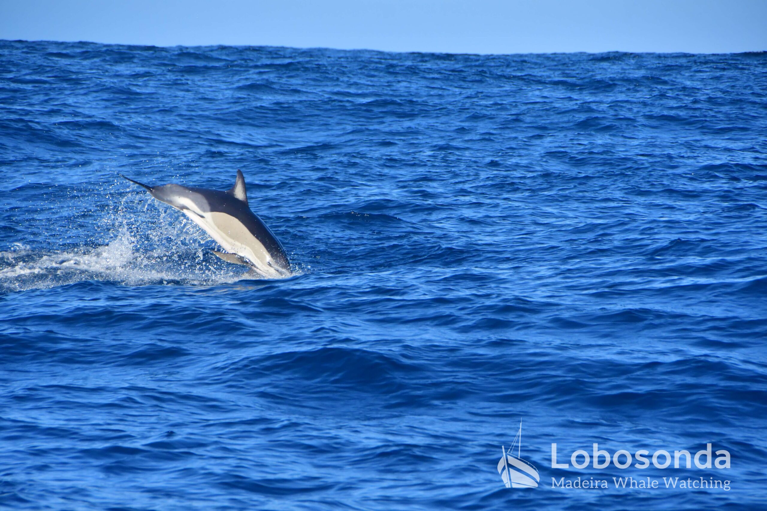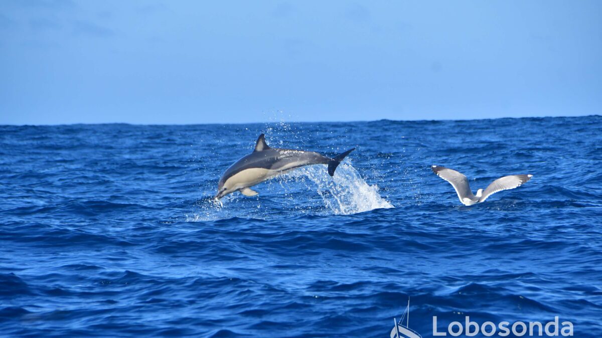 Heute verließen wir den Hafen in westliche Richtung und fuhren dem noch kräftigen Schwell entgegen. Unser Kurs führte uns hinaus in Gewässer mit einer Tiefe von über 3.000 Metern. Zweimal begegneten wir einer kleinen Gruppe Kurzschnabel-Gemeiner Delfine (Delphinus delphis). Während ein Tier noch aktiv auf der Jagd war, zogen die übrigen Gruppenmitglieder entspannt und ruhig durch das Meer.
