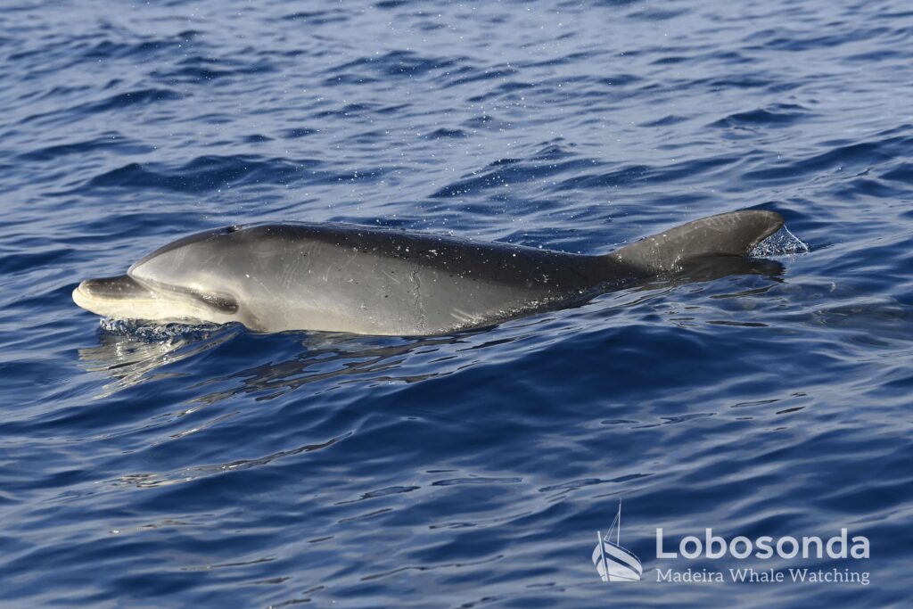 Astrid’s Eindrücke: Heute war das Meer auch an der Südwestküste mal ordentlich bewegt und etwas stürmischer als sonst. So waren unsere Gäste ganz nah dran an den Wellen. Auf und ab ging es. Für die Delfine ein reines Vergnügen in den Wellen zu surfen. Wir sahen heute FLECKENDELFINE und GROSSE TÜMMLER bei dieser allseits beliebten „Sportart“. Die Grossen Tümmler gehörten in die Extra-Klasse, grosse Tiere. Es waren nicht wie so oft die Residenten Grossen Tümmler, sondern deren „Cousins“ von weiter draussen, die Offshore Variante dieser Art. Ganz nah waren sie an der Riberia Brava zu sehen, sie schauten sich um und gingen dann wieder ihrer Wege.