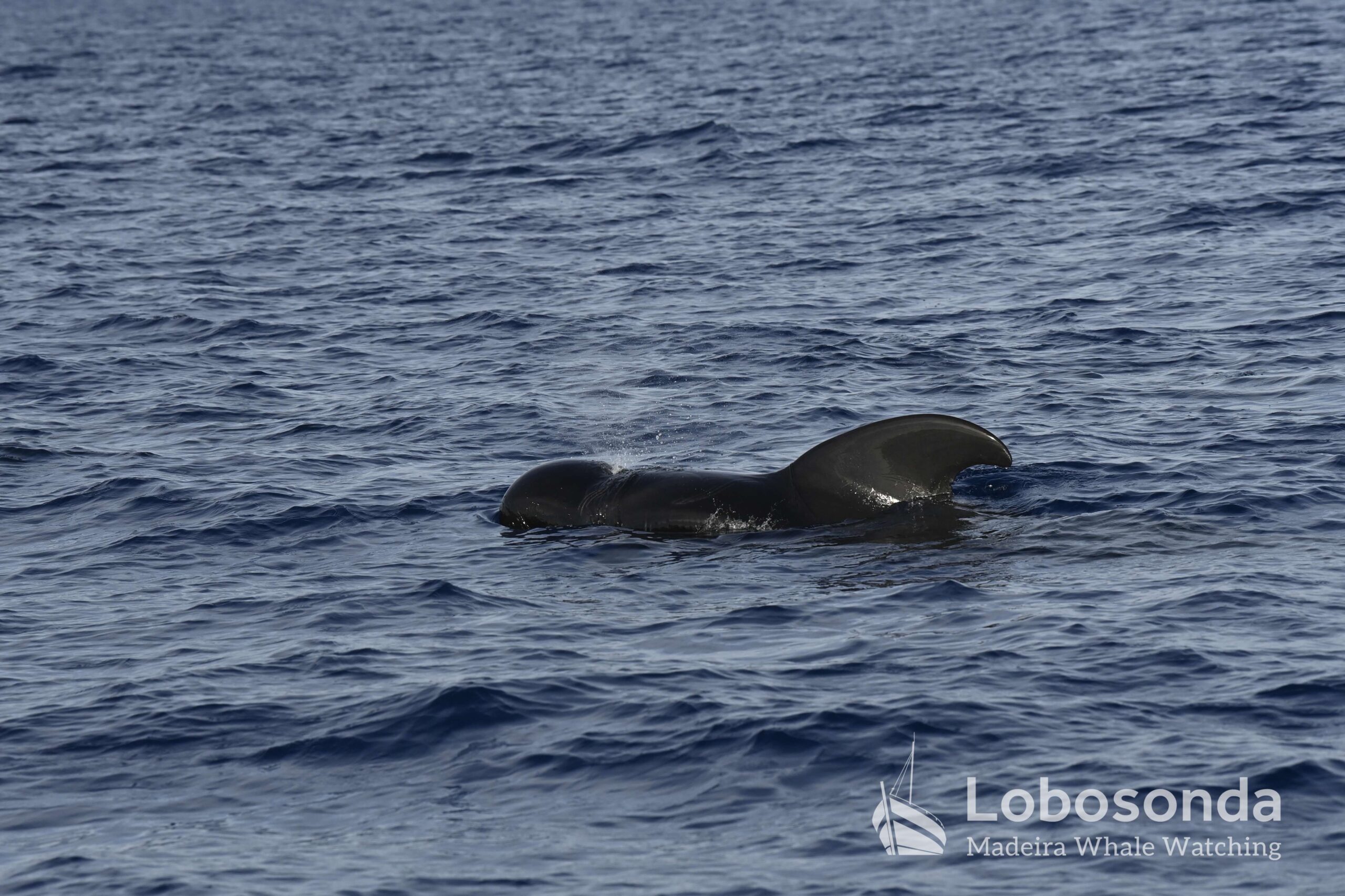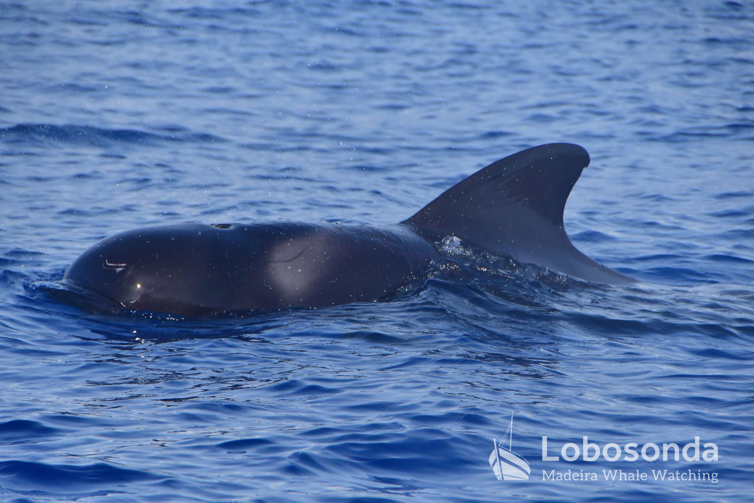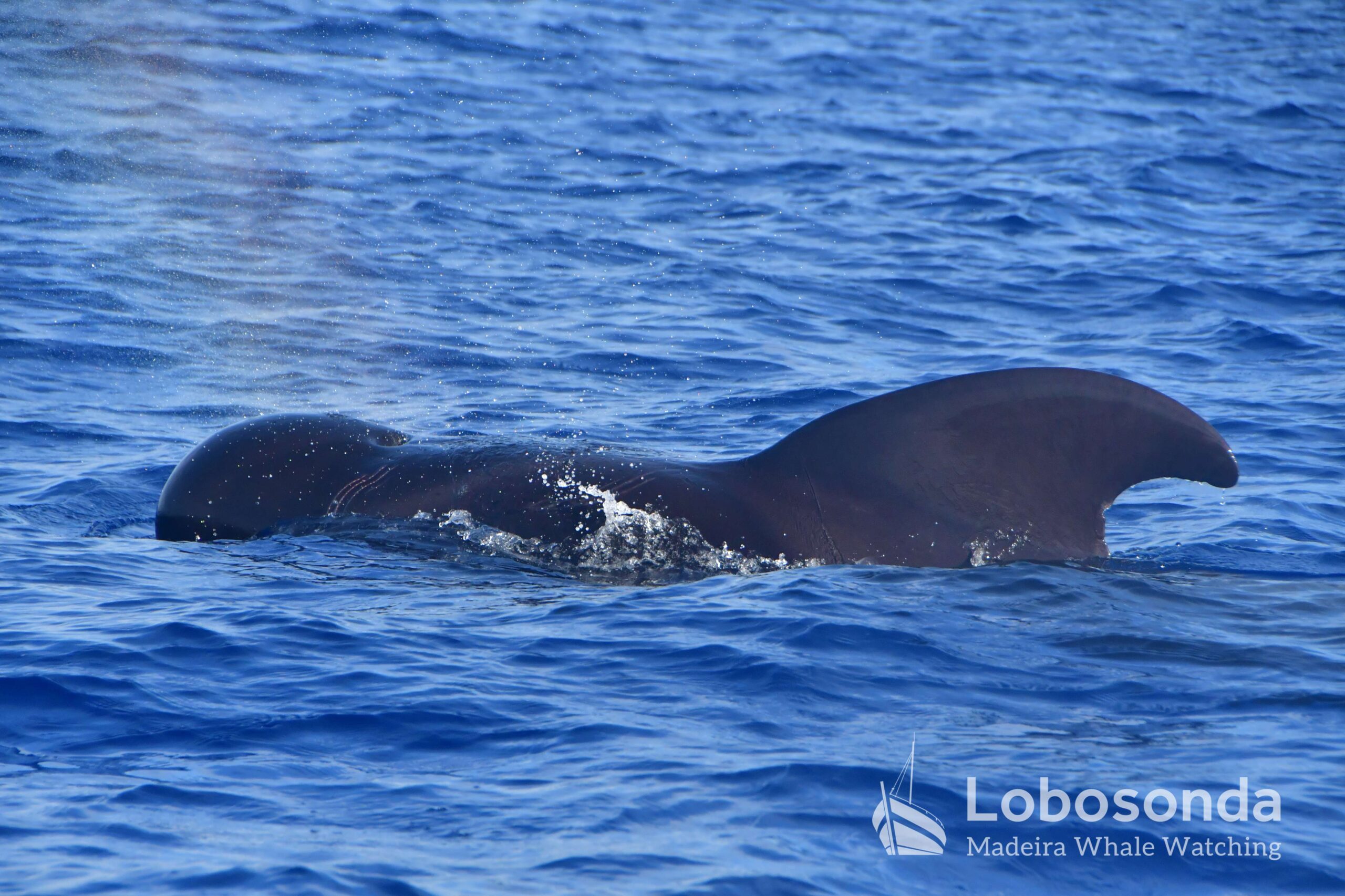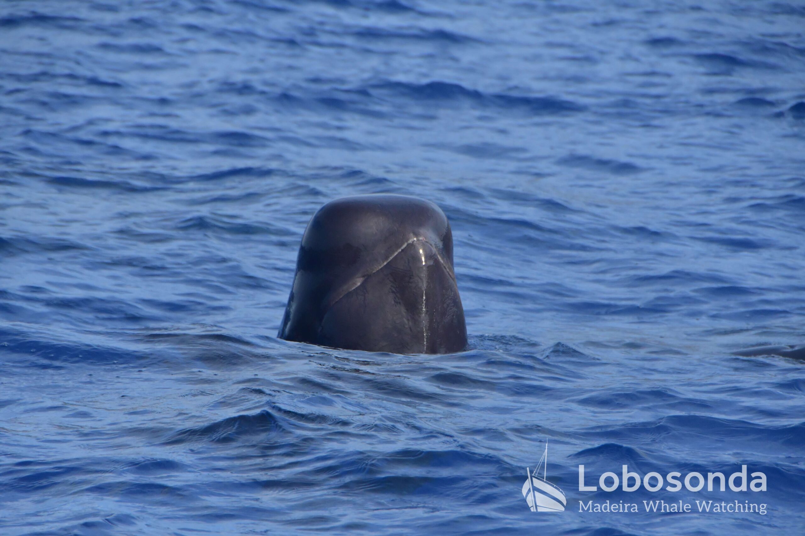 Diese sozialen Säugetiere passen ihr Verhalten häufig an andere Cetaceen an, indem sie deren Lautäußerungen und Bewegungen nachahmen. Heute Morgen beobachteten wir sie in der Nähe einer Familie Kurzflossen-Grindwale (Globicephala macrorhynchus) – einer friedlichen Art, die sich ihren Lebensraum mit der ansässigen Tümmler-Population Madeiras teilt. Oft imitieren die Tümmler sogar das Schwimmverhalten der Grindwale, sodass man sich gut vorstellen kann, wie es unter Wasser zugeht. Normalerweise halten sich Große Tümmler an die Regel „Ein Meeressäuger zurzeit“ und konzentrieren sich ganz auf die Interaktion mit ihren Artgenossen – uns schenken sie dabei meist wenig Beachtung. Heute jedoch kamen einige neugierig an unser Boot heran und verbrachten ruhig einige Momente am Bug.