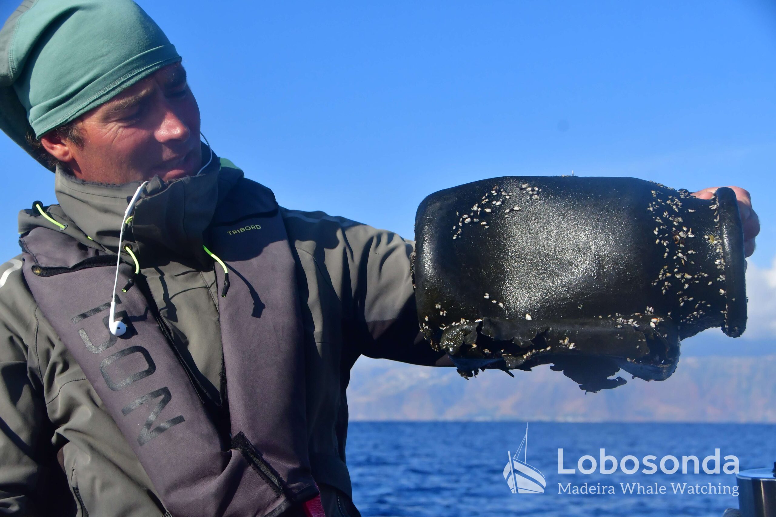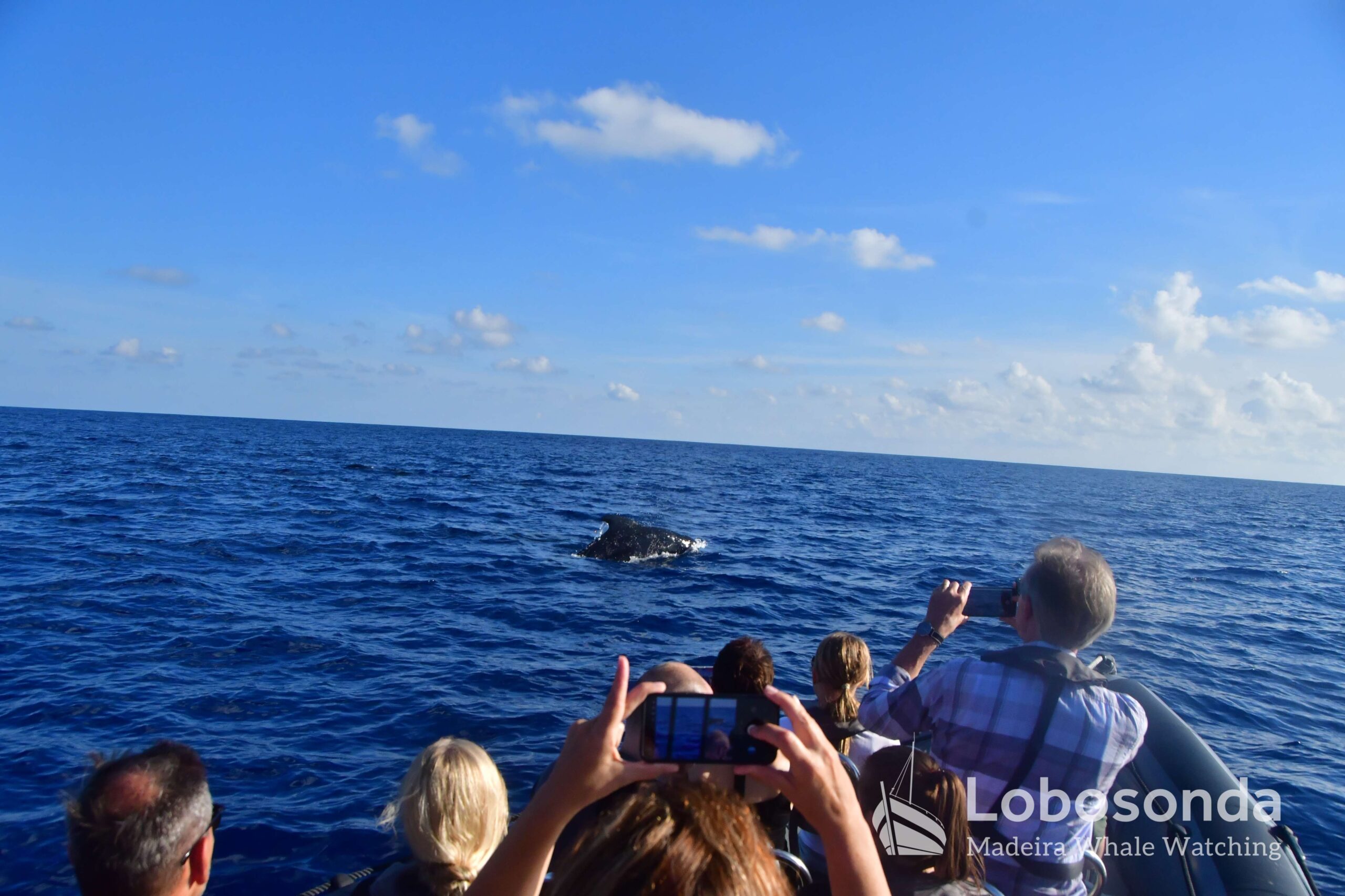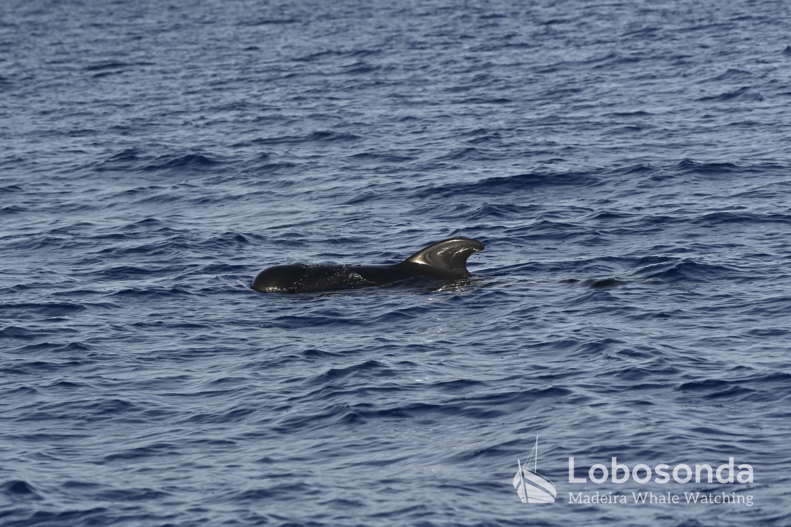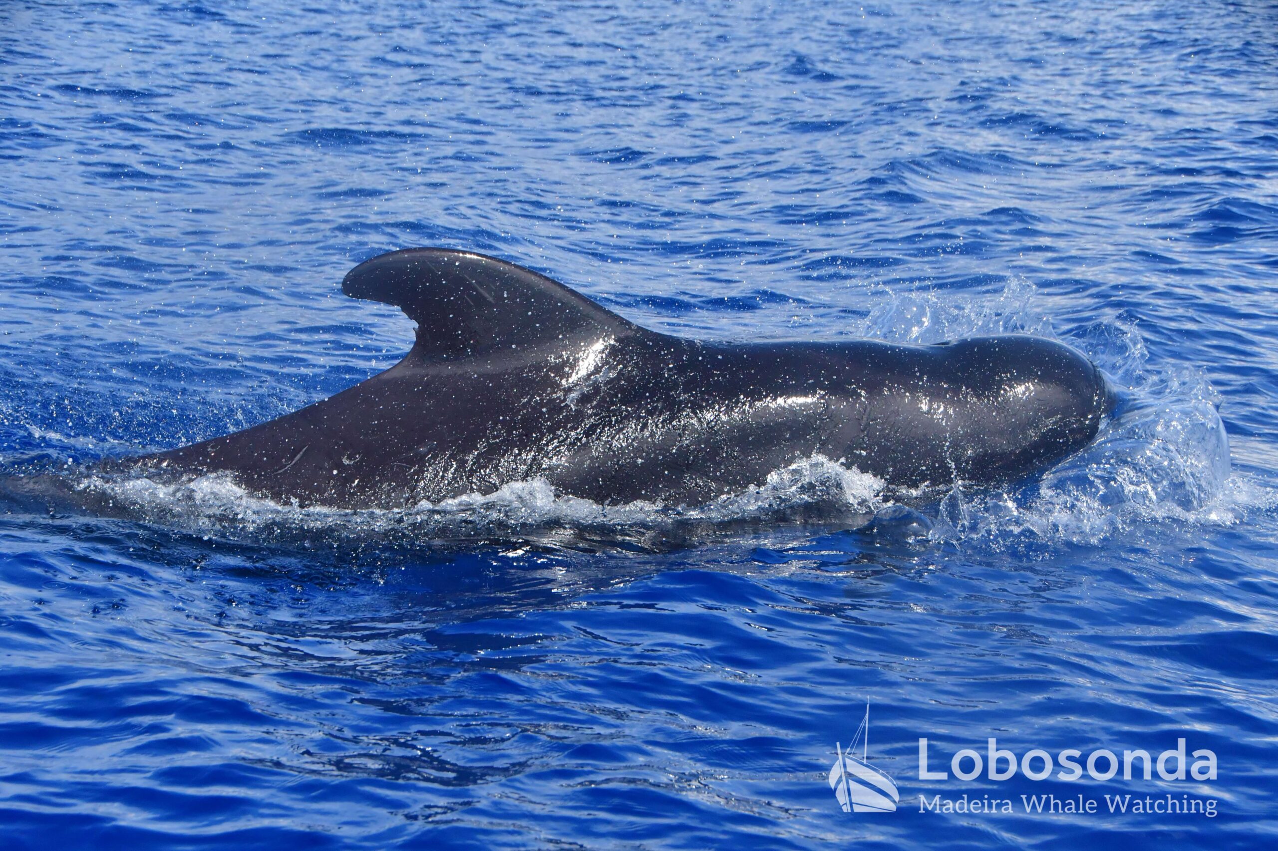 Diese sozialen Säugetiere passen ihr Verhalten häufig an andere Cetaceen an, indem sie deren Lautäußerungen und Bewegungen nachahmen. Heute Morgen beobachteten wir sie in der Nähe einer Familie Kurzflossen-Grindwale (Globicephala macrorhynchus) – einer friedlichen Art, die sich ihren Lebensraum mit der ansässigen Tümmler-Population Madeiras teilt. Oft imitieren die Tümmler sogar das Schwimmverhalten der Grindwale, sodass man sich gut vorstellen kann, wie es unter Wasser zugeht. Normalerweise halten sich Große Tümmler an die Regel „Ein Meeressäuger zurzeit“ und konzentrieren sich ganz auf die Interaktion mit ihren Artgenossen – uns schenken sie dabei meist wenig Beachtung. Heute jedoch kamen einige neugierig an unser Boot heran und verbrachten ruhig einige Momente am Bug.