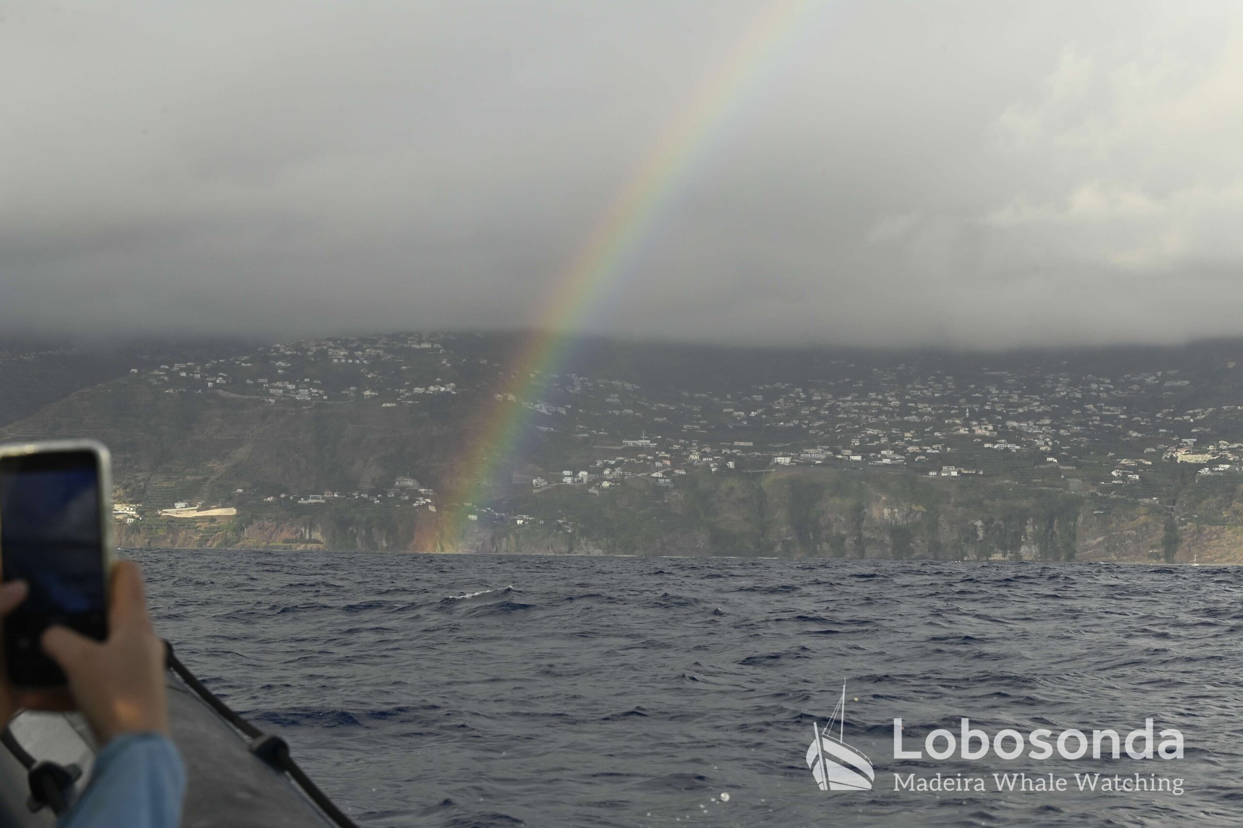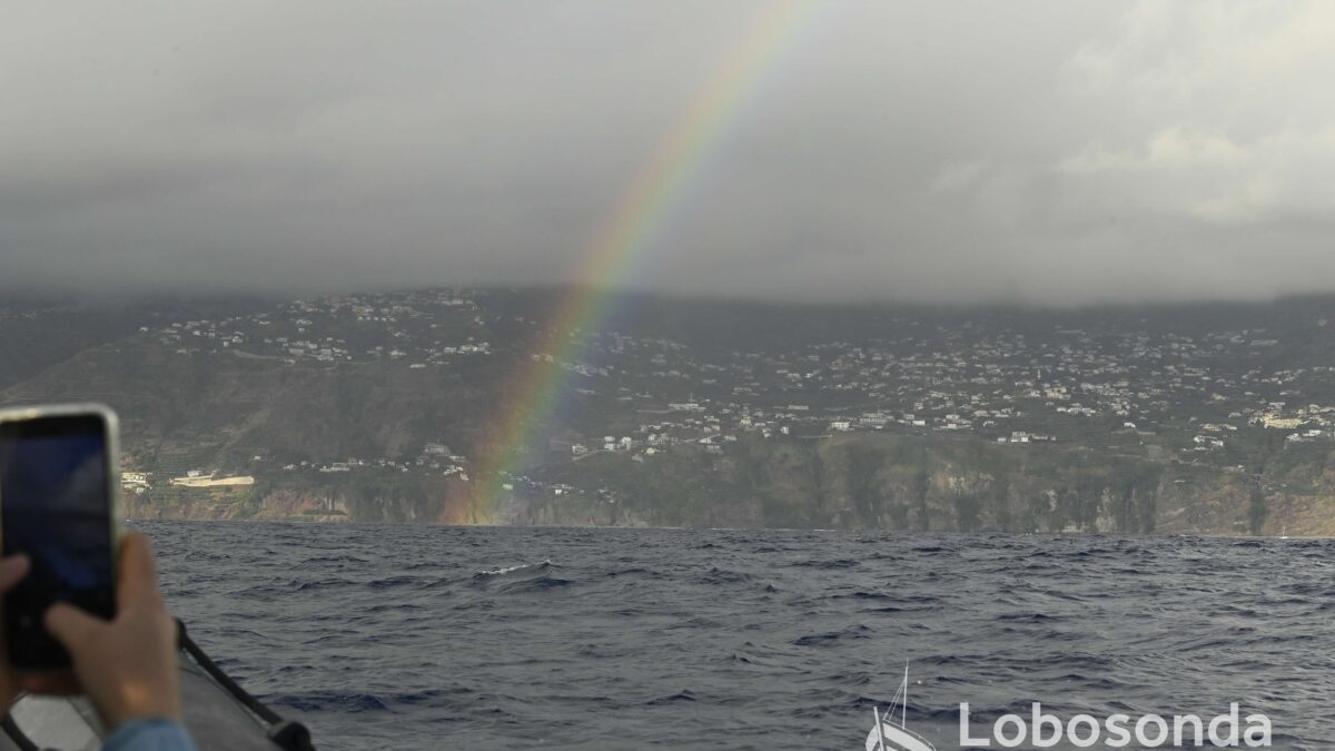 Wir begannen den Tag mit unglaublichen Sichtungen von Atlantischen Fleckendelfinen (Stenella frontalis) und Pottwalen (Physter macrocephalus), aber auch mit Regen, so viel Regen. Zur Mittagszeit waren alle bis auf die Haut durchnässt und brauchten ein heißes Getränk. Im Laufe des Tages ließ der Regen nach, aber auch die Sichtungen wurden seltener. Nach dem Mittagessen sahen wir Tümmler (Tursiops truncatus). Auf der letzten Fahrt des Tages gab es keine Sichtungen mehr, aber unsere Gäste genossen dennoch eine holprige Fahrt über das Meer mit einem wunderschönen Regenbogen auf dem Rückweg zum Hafen.