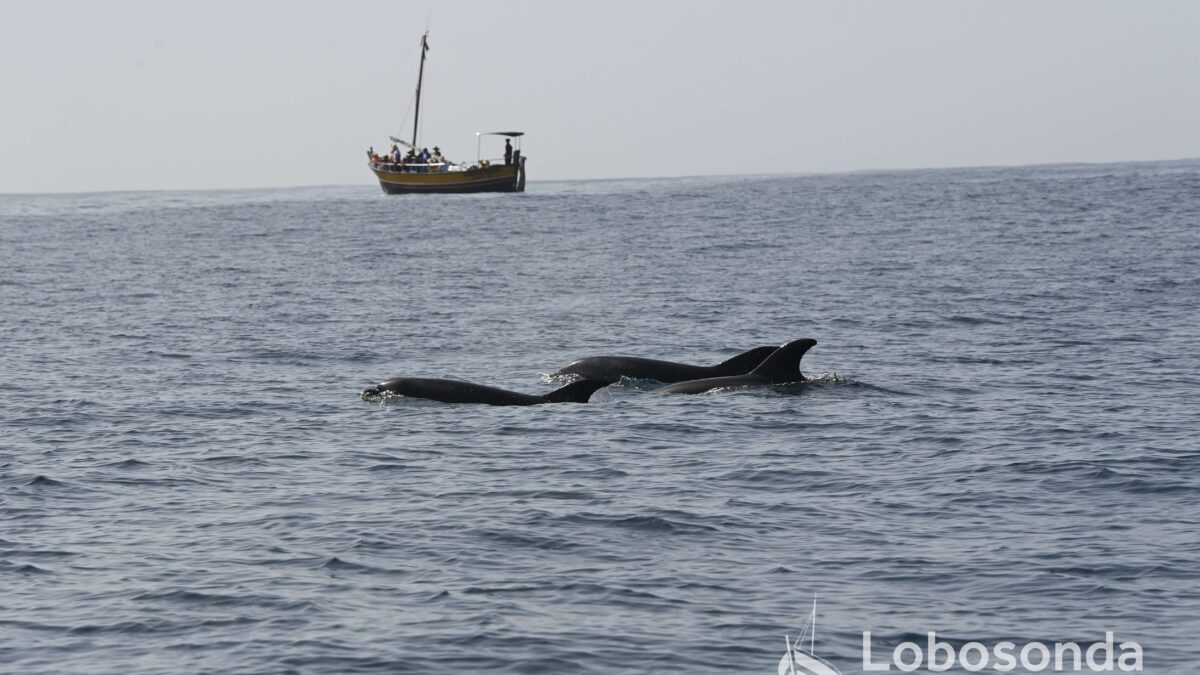 Der heutiger Ostwind machte es unserem Team nicht leicht, Wale und Delfine zu finden. Zwar brachte der Wind keine schwierigen Bedingungen mit sich und wir konnten auf einem ruhigen, glatten Meer hinausfahren, doch er führte große Mengen Sand vom afrikanischen Kontinent mit sich. Dieser Sand ist sehr nährstoffreich für unsere Ozeane, da er Nährstoffe wie Phosphat und Natrium für das Phytoplankton an der Oberfläche liefert. Gleichzeitig bleibt er jedoch in der Luft suspendiert und verursacht einen Dunst, der unserem Späher an Land häufig die Sicht erschwert.