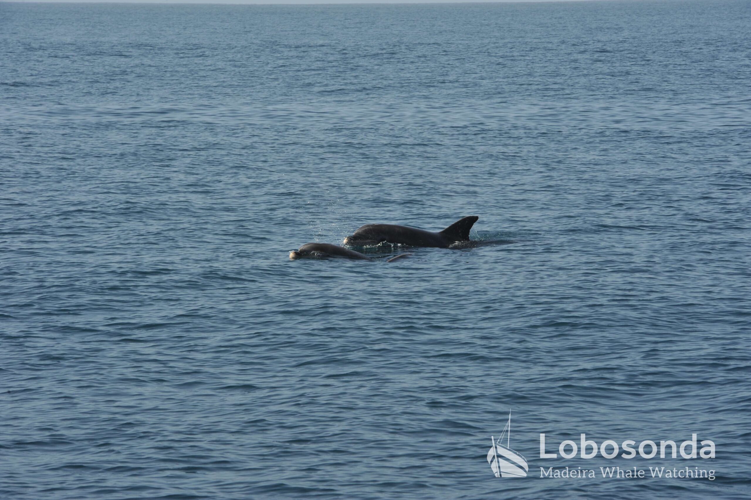 Auch die Verbreitung größerer Raubtiere kann durch besonders stürmische Winter beeinflusst werden. Dazu zählen pelagische Haie wie der Makohai (Isurus oxyrinchus), den wir heute Nachmittag beobachten konnten. Sie folgen möglicherweise geschwächter oder verletzter Beute in die Küstengewässer ozeanischer Inseln. Größere Fische wie der Mondfisch (Mola mola), der während der Ausfahrt auf unserem traditionellen Boot gesichtet wurde, folgen ebenfalls ihrer bevorzugten Beute – der Portugiesischen Galeere – in die Küstengewässer Madeiras. Am Nachmittag gelang uns außerdem die Sichtung einer Gruppe jagender Großer Tümmler (Tursiops truncatus), einer Art, die sich meist in den Gewässern rund um Madeira und die Kanarischen Inseln aufhält. Viele dieser Küstenräuber bleiben bei starken Stürmen näher an der Küste oder bewegen sich im Schutz größerer Gruppen.