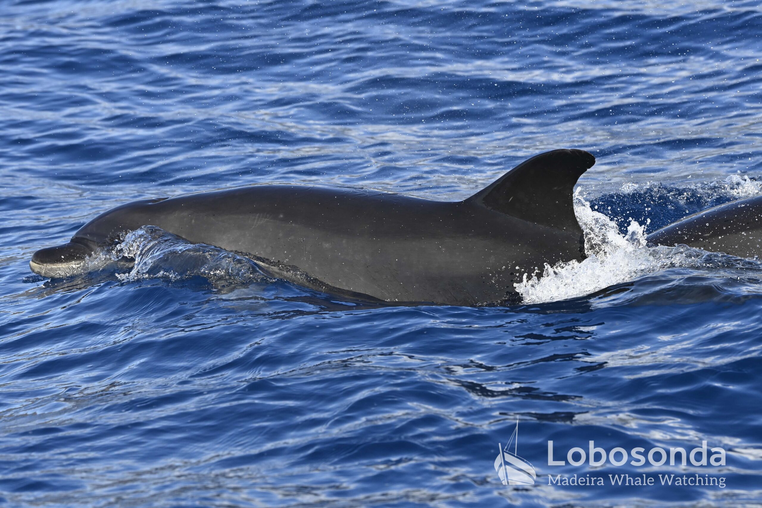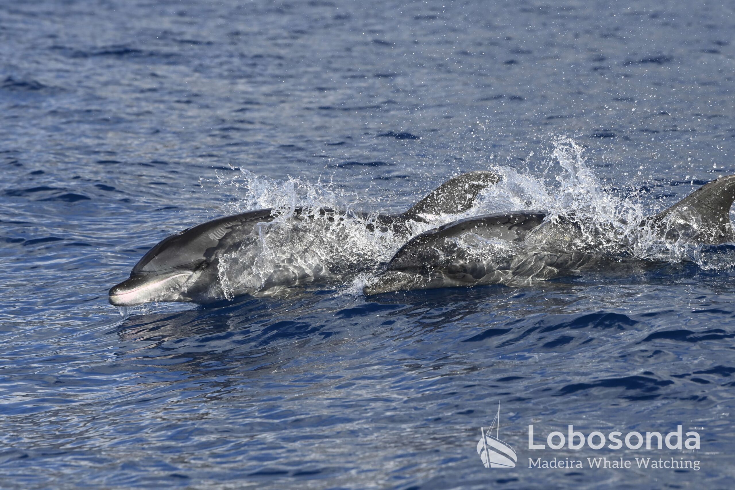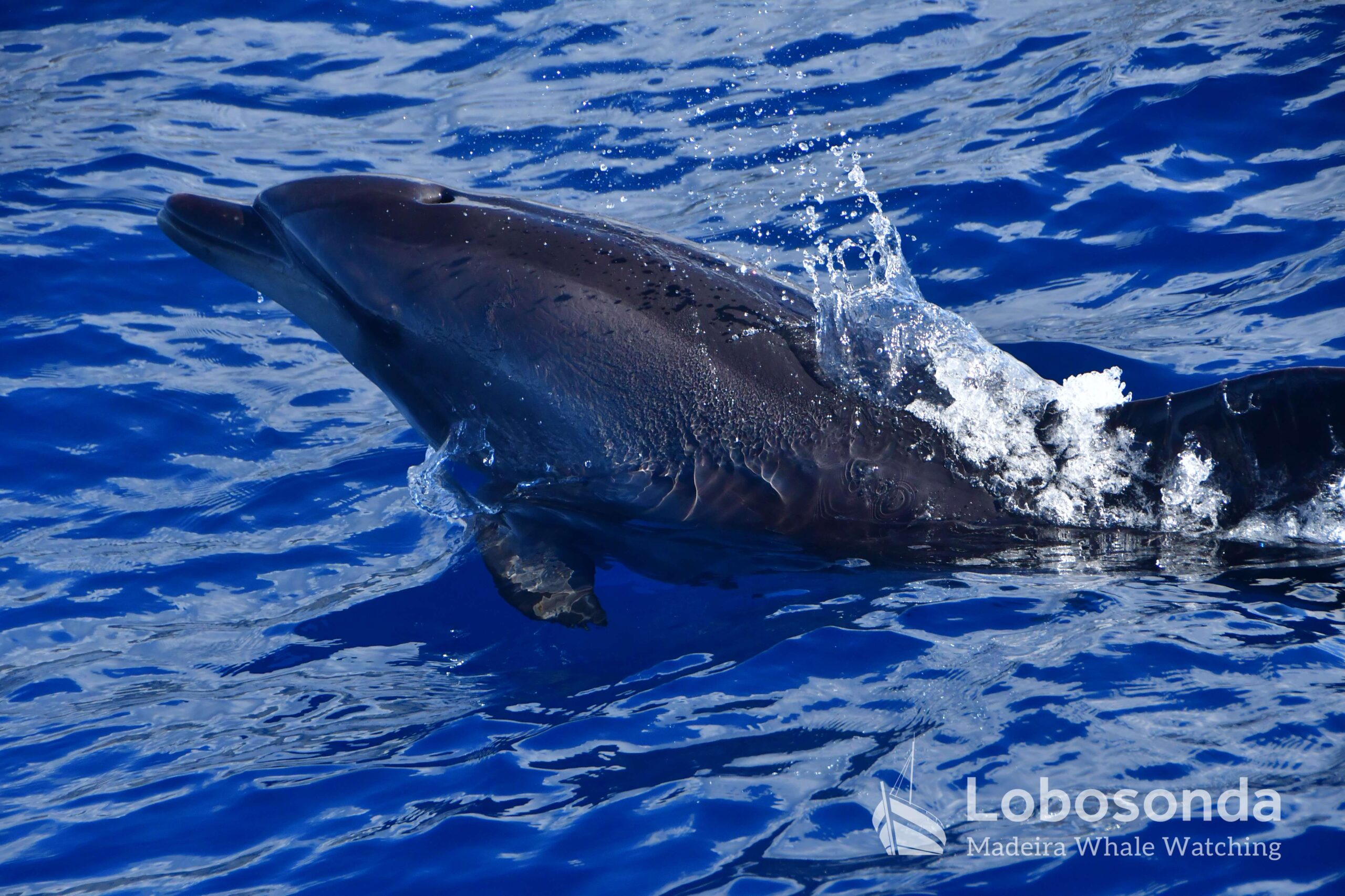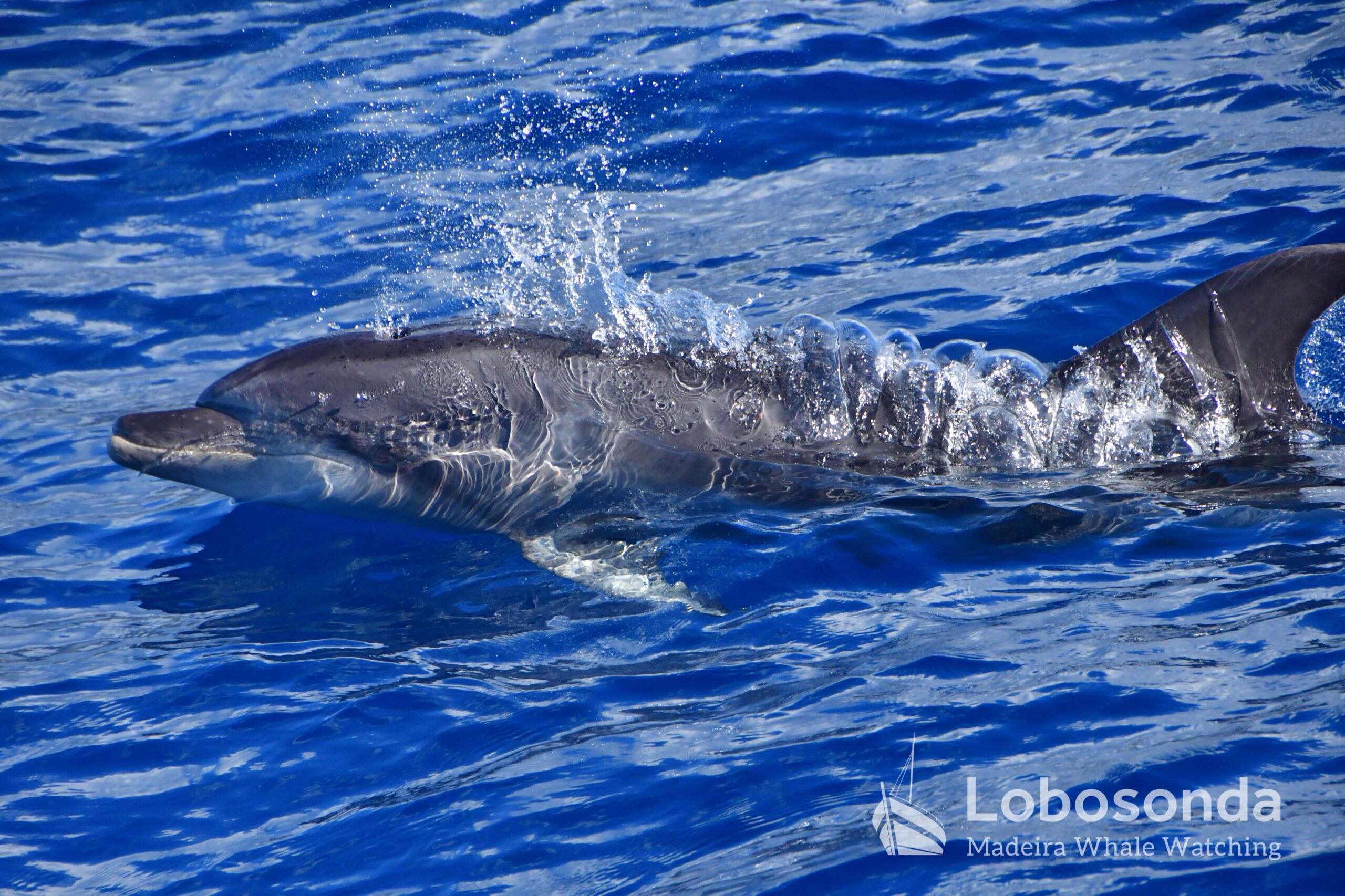 Am Morgen fuhren wir hinaus auf eine unruhige See mit vielen Wellen und Gischt. Wir suchten im Westen, hatten aber kein Glück. Dennoch waren alle begeistert von den abenteuerlichen Bedingungen auf dem Meer. Am Nachmittag tauchten Große Tümmler (Tursiops truncatus) auf und sorgten für ein bisschen Delfin-Action.