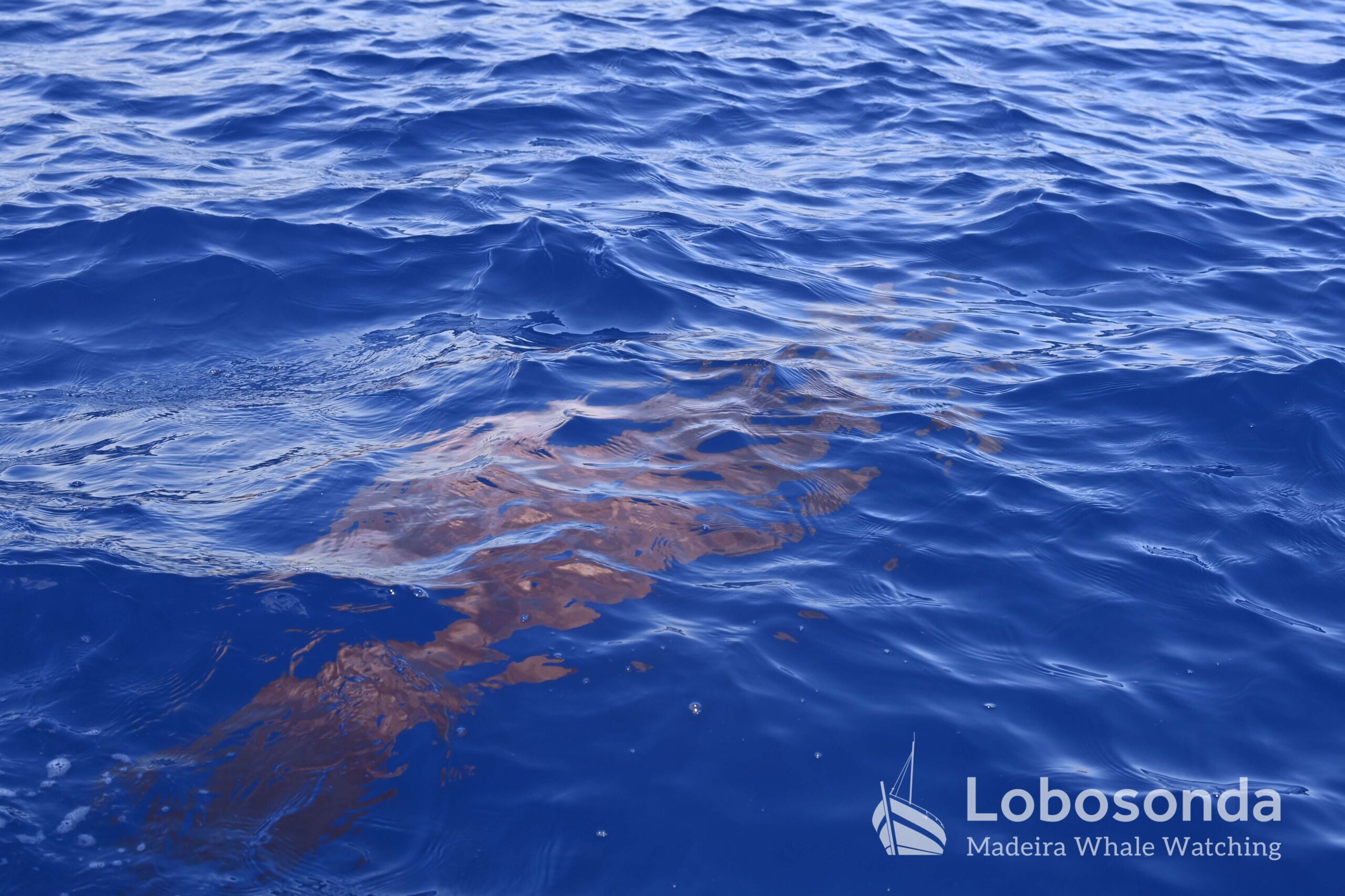 Zu den Atlantischen Fleckendelfinen gesellten sich heute viele Gelbschnabelsturmtaucher (Calonectris borealis). Wir sehen diese Arten oft zusammen, da sie nach denselben Fischen jagen. Interessanterweise hatten wir heute Morgen auch einige lustige Begegnungen mit Fischen. Wir stießen auf einen toten Kugelfisch und fanden dann eine große Holzkiste, die von einigen Fischen, darunter riesige Dorados, begleitet wurde.
